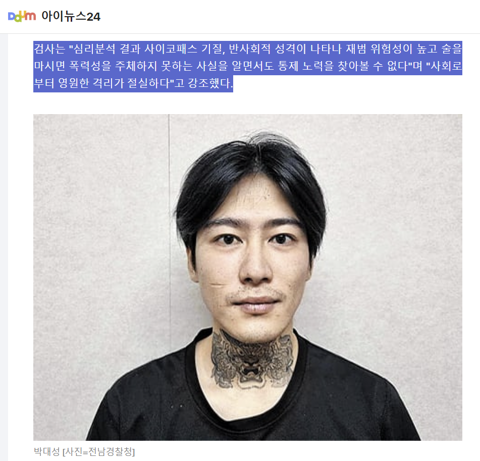 "사회로부터 영원한 격리가 절실하다"고 강조했다.