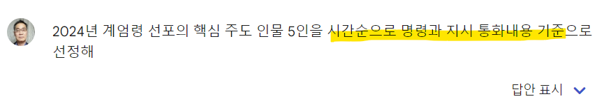 예) 김용현국방이 ---> 곽종근과 몇일 몇시에 통화