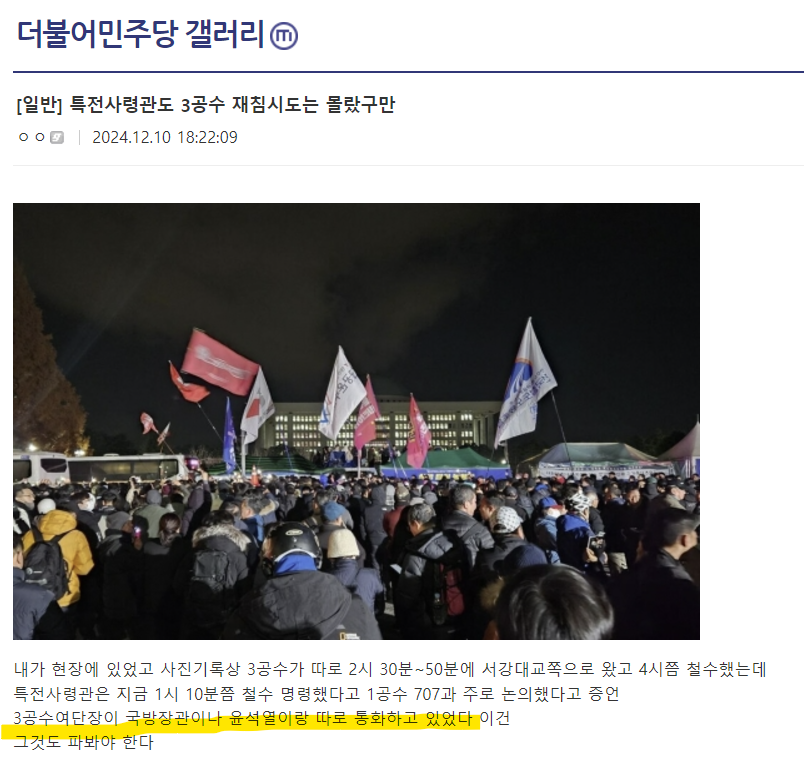 3공수여단장이 국방장관이나 윤석열이랑 따로 통화하고 있었다.