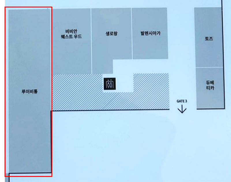 A급 명품은 1층의 매장 크기와 위치가 달라요.