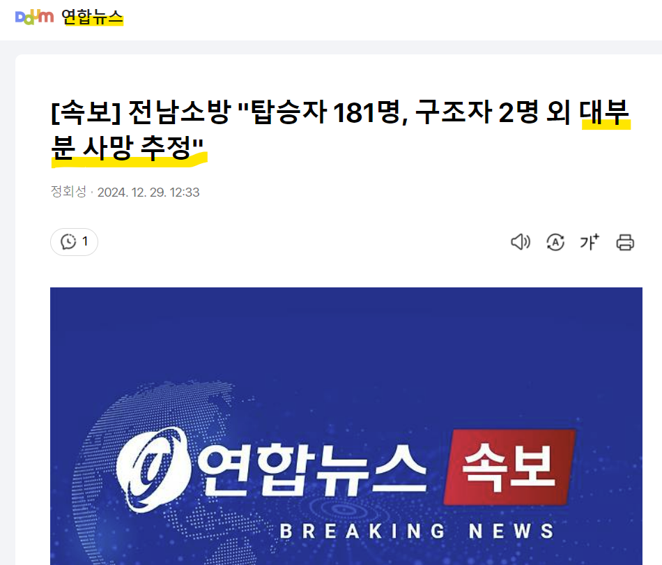 탄핵의 관심도는 떨어지고 관심도는 무안 항공기 사건으로 향하겠죠