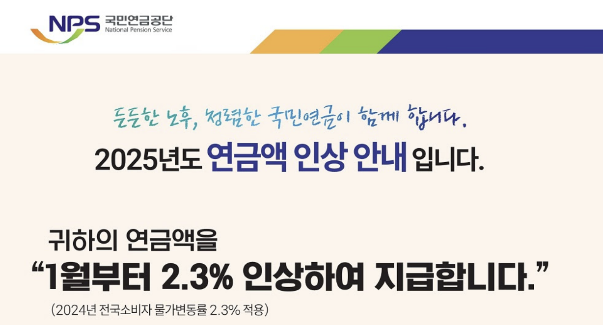 기쁜 소식 - 2025년도 국민연금 수급액이 2.3% 인상되었어요! 이메일이 도착