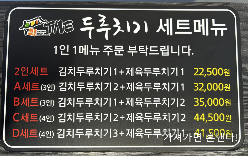 2인 세트 (김치두루치기1+제육두루치기1)을 주문하였습니다.