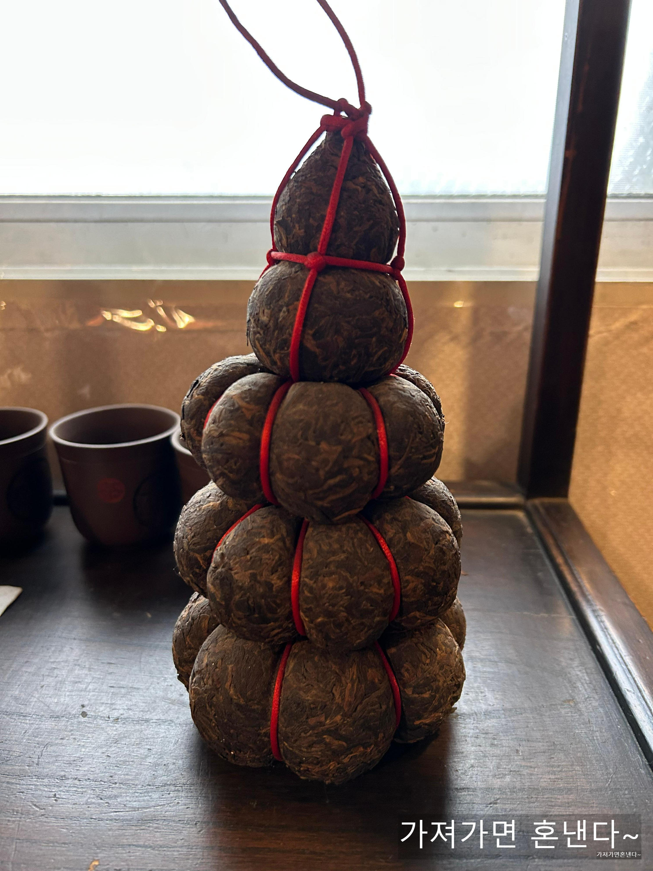 보이차를 중국인들이 이렇게 묶어서 판매하나봐요.  음 소똥과 비슷한데...말똥구리 비디오에서 본적이 있는데...음...