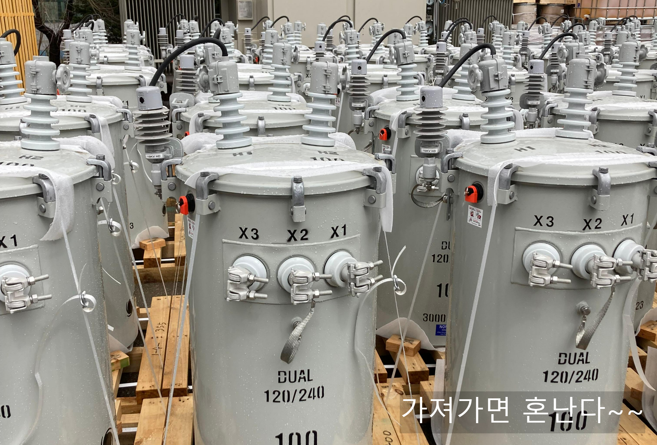 요 것은 출하준비중인 변압기입니다. "변압기 및 발전기 회사의 주식에 투자하세요^^ 매우 전망이 좋아요^^"