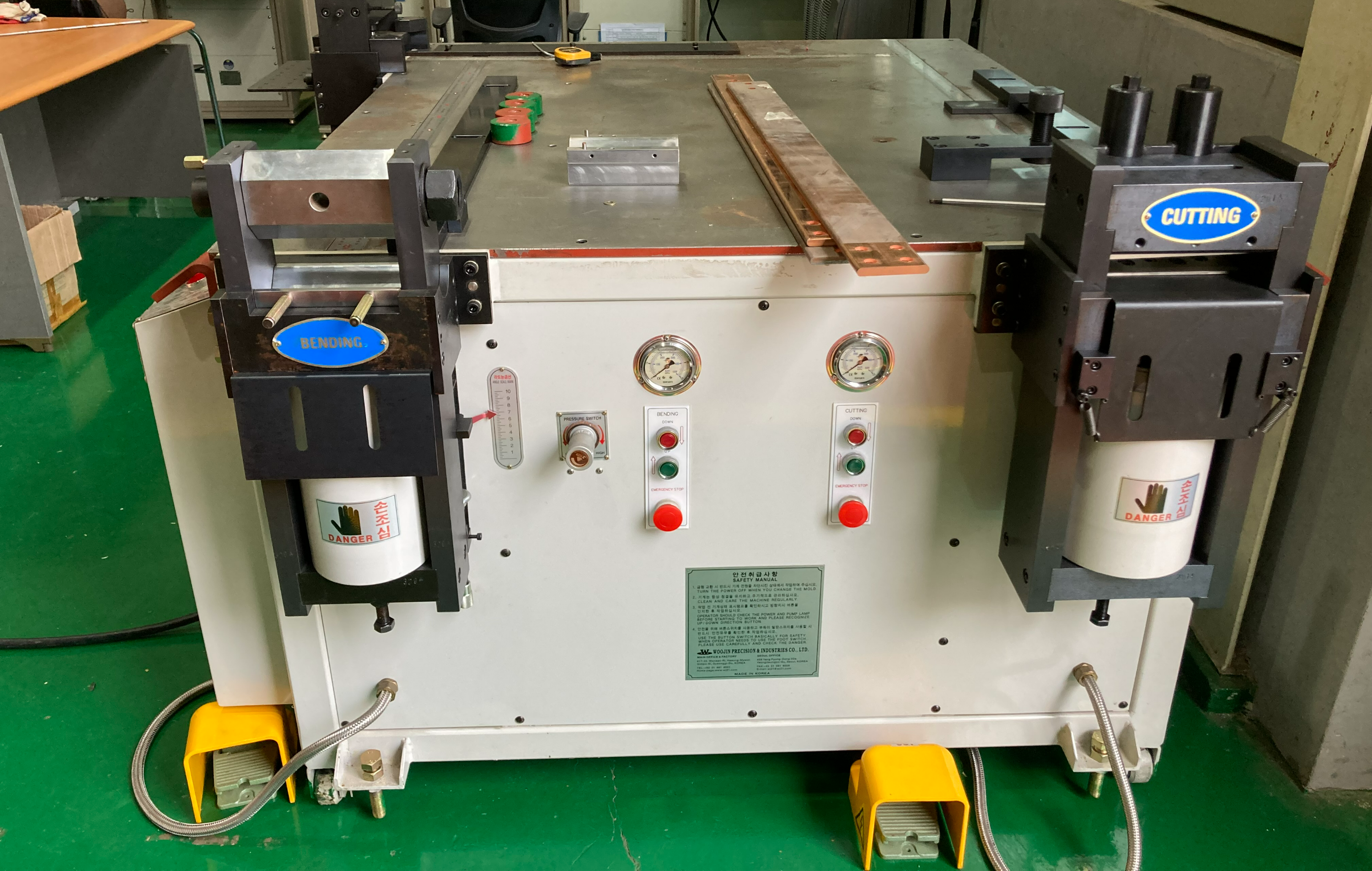 '부수바 절단절곡기' 설비 입니다. '자르고', '구멍뚫고', "굽히고' .... One-shot, Three-kill 설비!