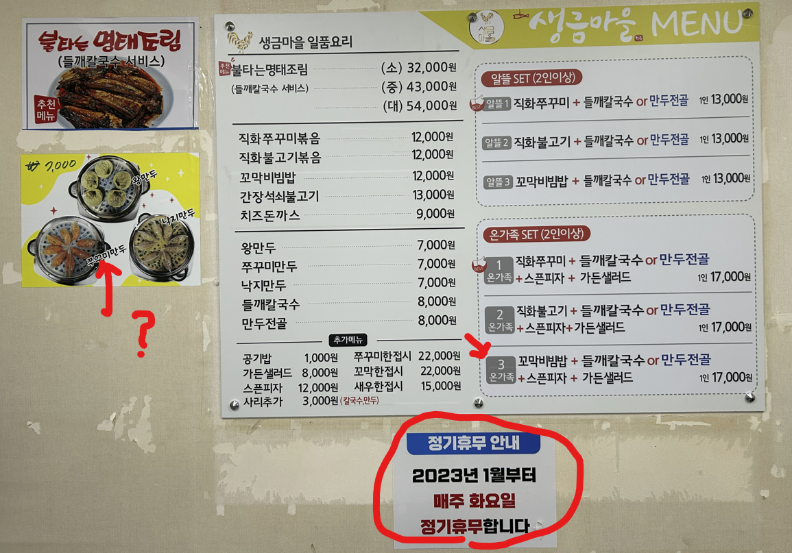 '쭈꾸미만두' 궁금하네요~. 화요일에는 휴무입니다.
