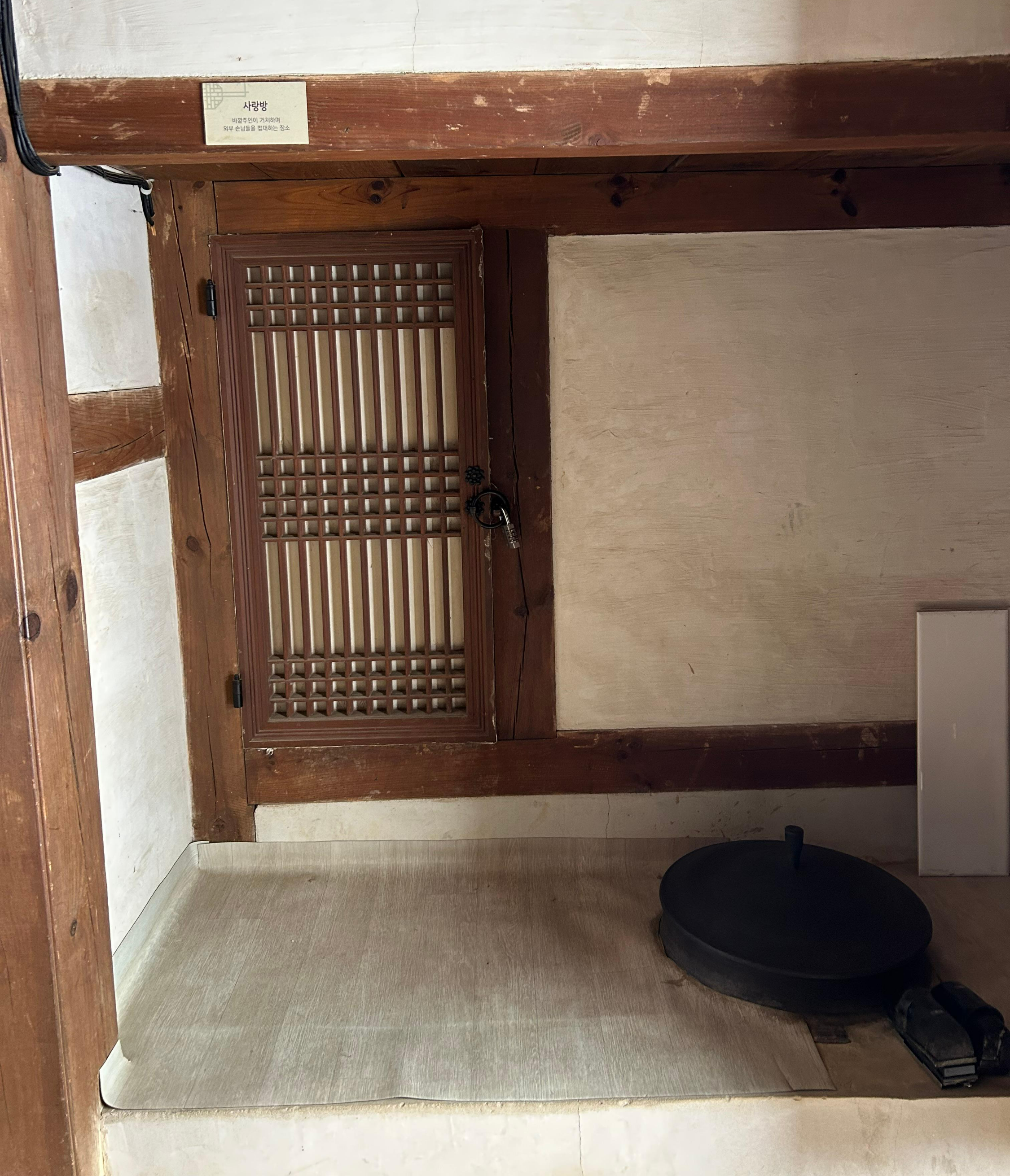 별도의 온돌이 있고 이중문으로 뒤어 있어서 일면식 없는 나그네는 안채로 들어올 수 없는 구조입니다. 나그네는 이른 아침 바깥문을 열고 나갈 수 있습니다. 외부인에게 문을 열어주는 정이 넘치던 시절이였습니다.^^