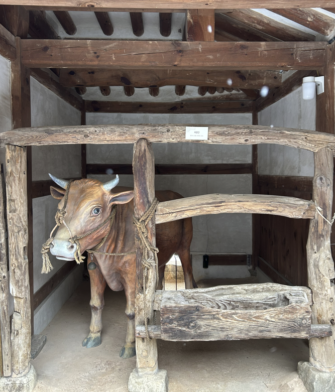 집안에 외양간이 있어요. 부유농민이라도 바깥에 두기에는 엽전이 좀 모자랐나봐요. 그런데 냄새는?? 소가 째려보네요^^