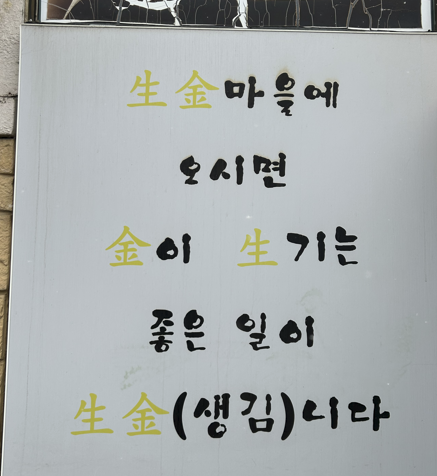 '생금'은 한자로 '生金' 입니다. '금을 만든다.' 후에 생금집에서 설명하겠습니다.