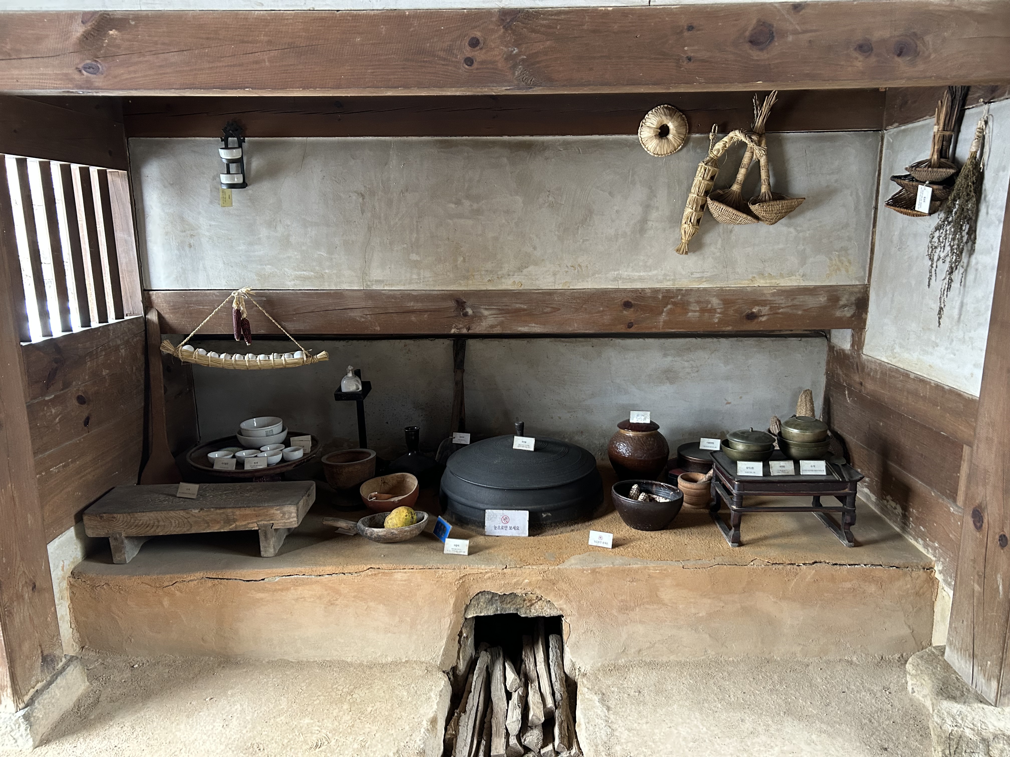 해설사 : 온돌에 사용한 검은 재는 화장실에 비치하고 뿌려주면서 거름으로 사용했다고 해요. 똥지게도 옆에 있네요^^