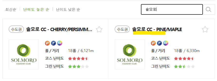 솔모로 코스 및 그린 난이도