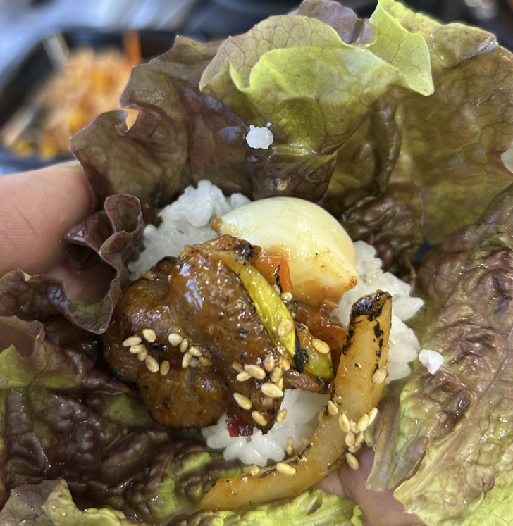 직화 제육 쌈밥 한입 먹고, 황태와 콩나물 한입 먹고, 계란찜 한입 먹고....  같은 패턴 계속 반복 ~~~~