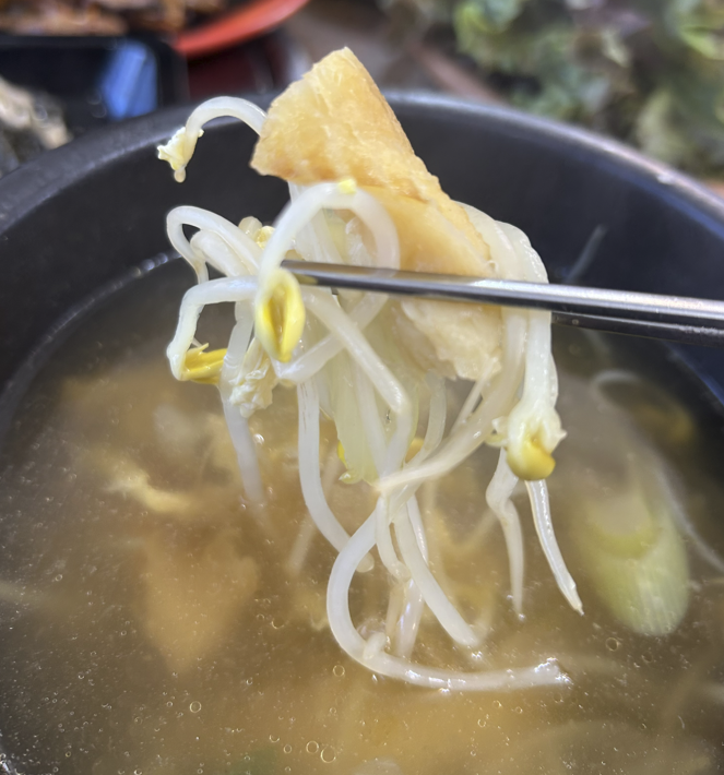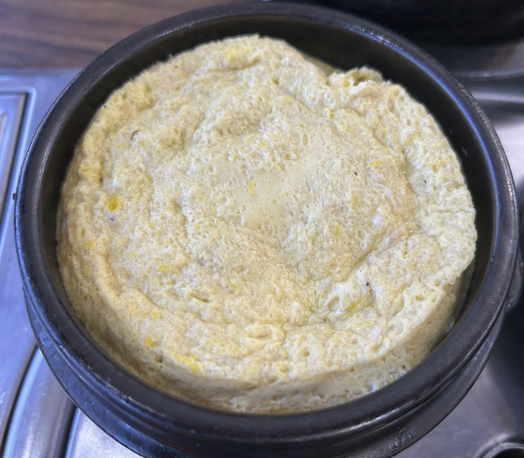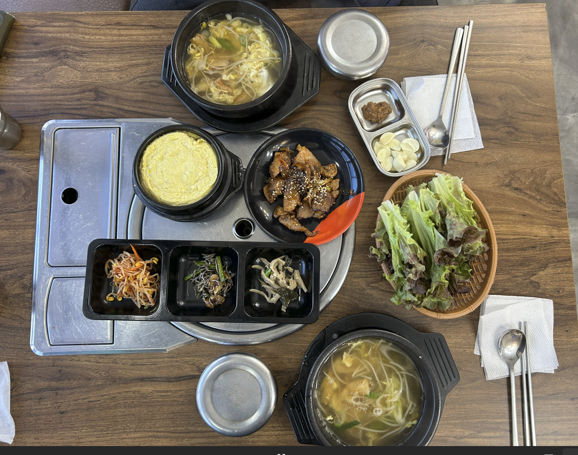 그러니 {시원한 황태국, 부드러운 계란찜, 직화 제육}의 조합이 완성되었어요.