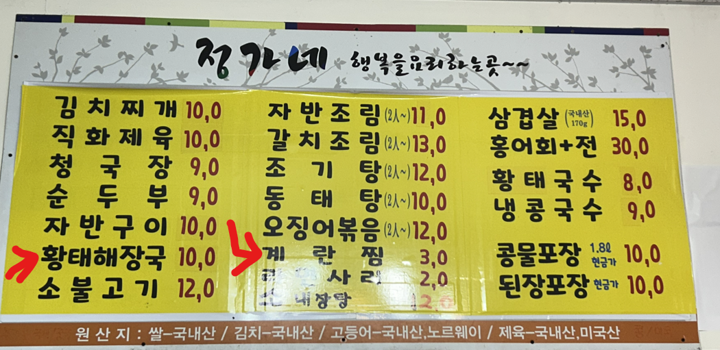 정가네 '황태해장국'