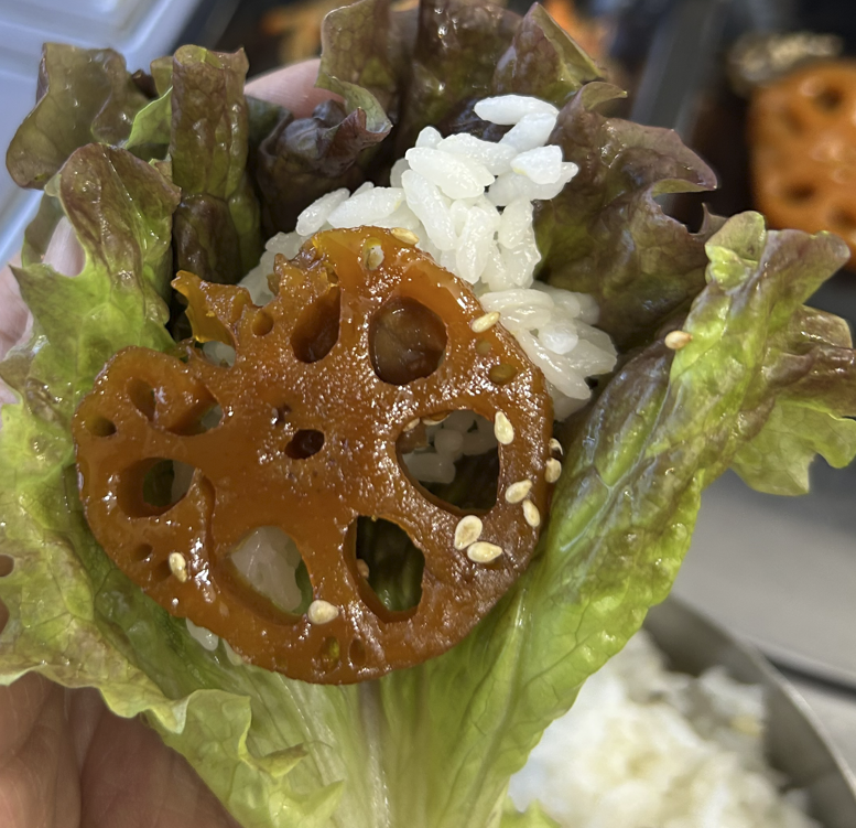 어느덧 직화 제육을 다 먹어버려서 '연근' 투입~~  오! 색다른 맛인데요. ㅎㅎ