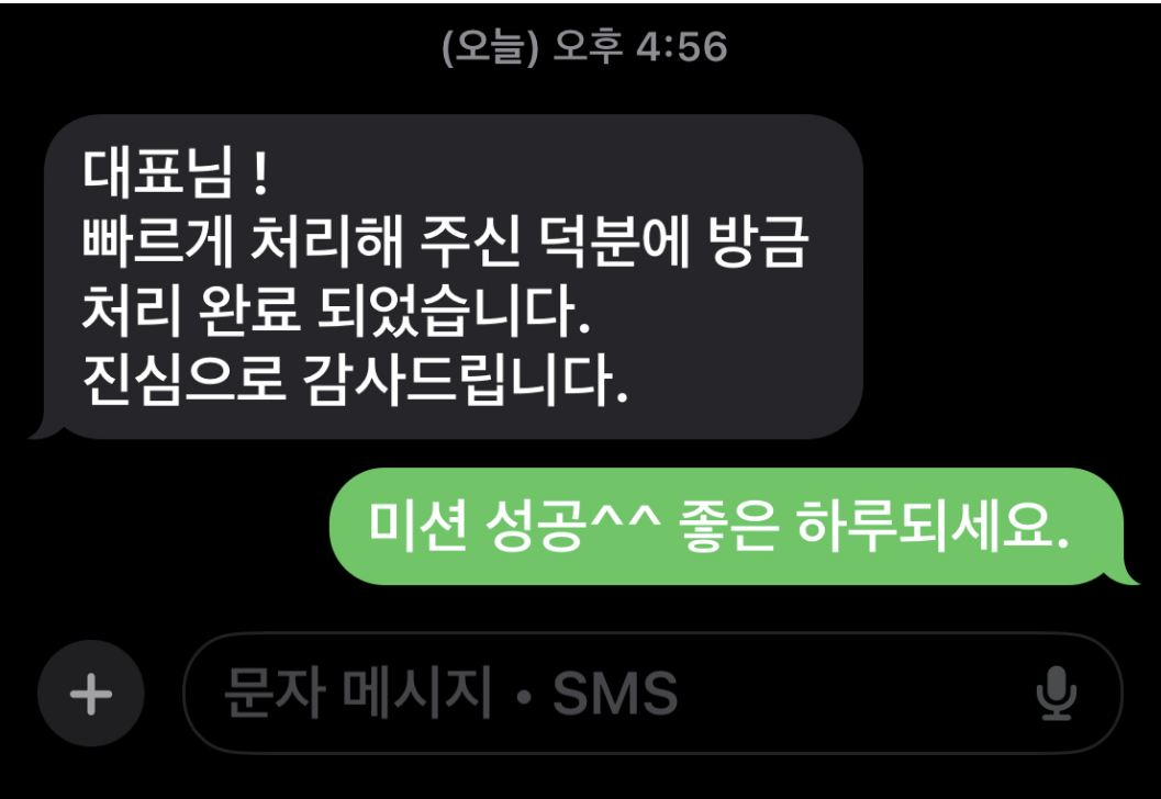A대표는 작전 스케줄대로 한국중소벤처기업유통원 심사관에게 전화 후 문자 보내왔어요. 오후에 연락한다고 하니 우리 스케줄대로 착착 진행됩니다.^^