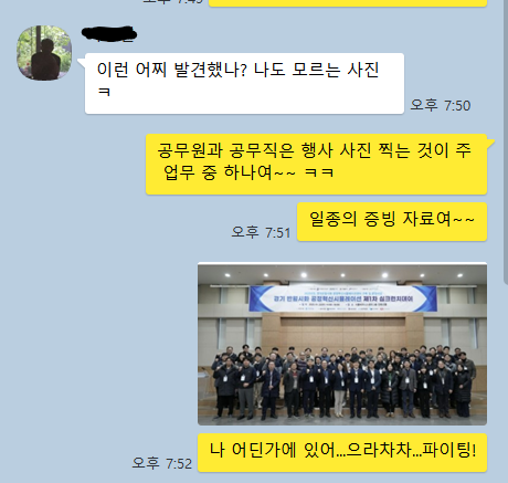 새로 접하는 공무원 유사 조직에서 전반적으로 잘 적응하고 다양한 인적 네트워크 형성 기회로 인해 즐겁게 보내는 것 같다. Keep going!
