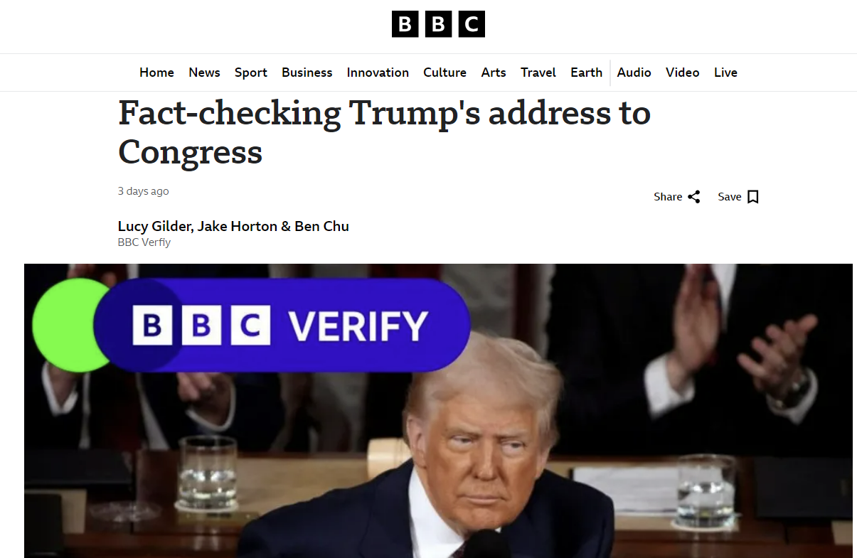Fact-checking Trump's address to Congress - [출처] BBC.com, 2025. 03. 05