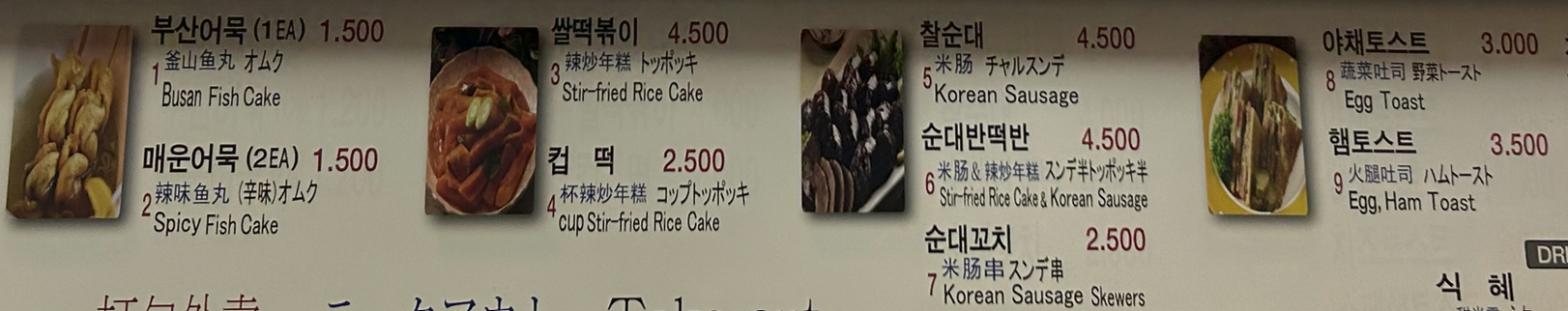 분식집도 한글, 중국어, 일본어, 영어가?