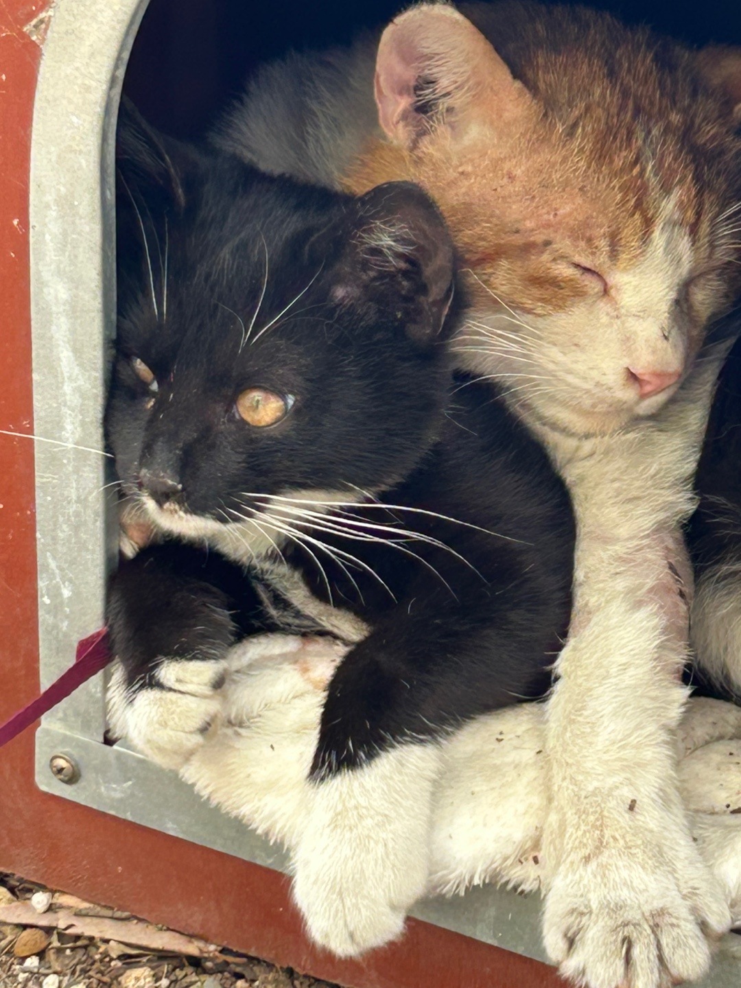 그리고.... 그 옆에서 당당히 졸고있는 'CU고양이춘식'이와 '까미' (1달전 등장한 길고양이인데 둘이 살림 차린 것 같아요~~^^)