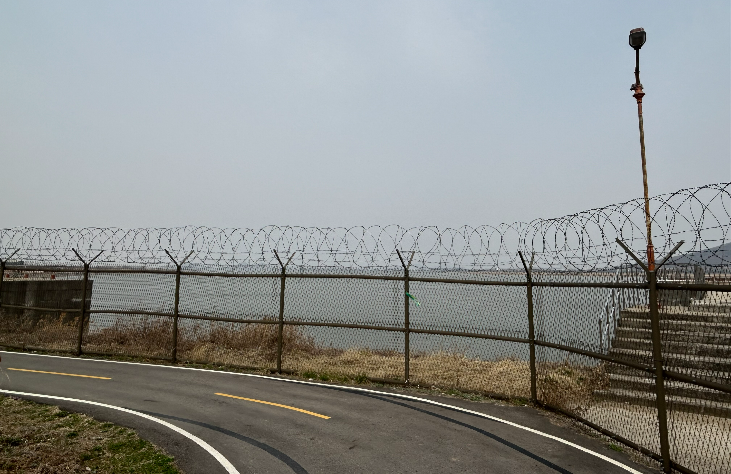 철조망이 있는 이유는? "내래 임진강 따라 북에서 왔수다!" '평화누리 자전거길' 이라고 되었네요.