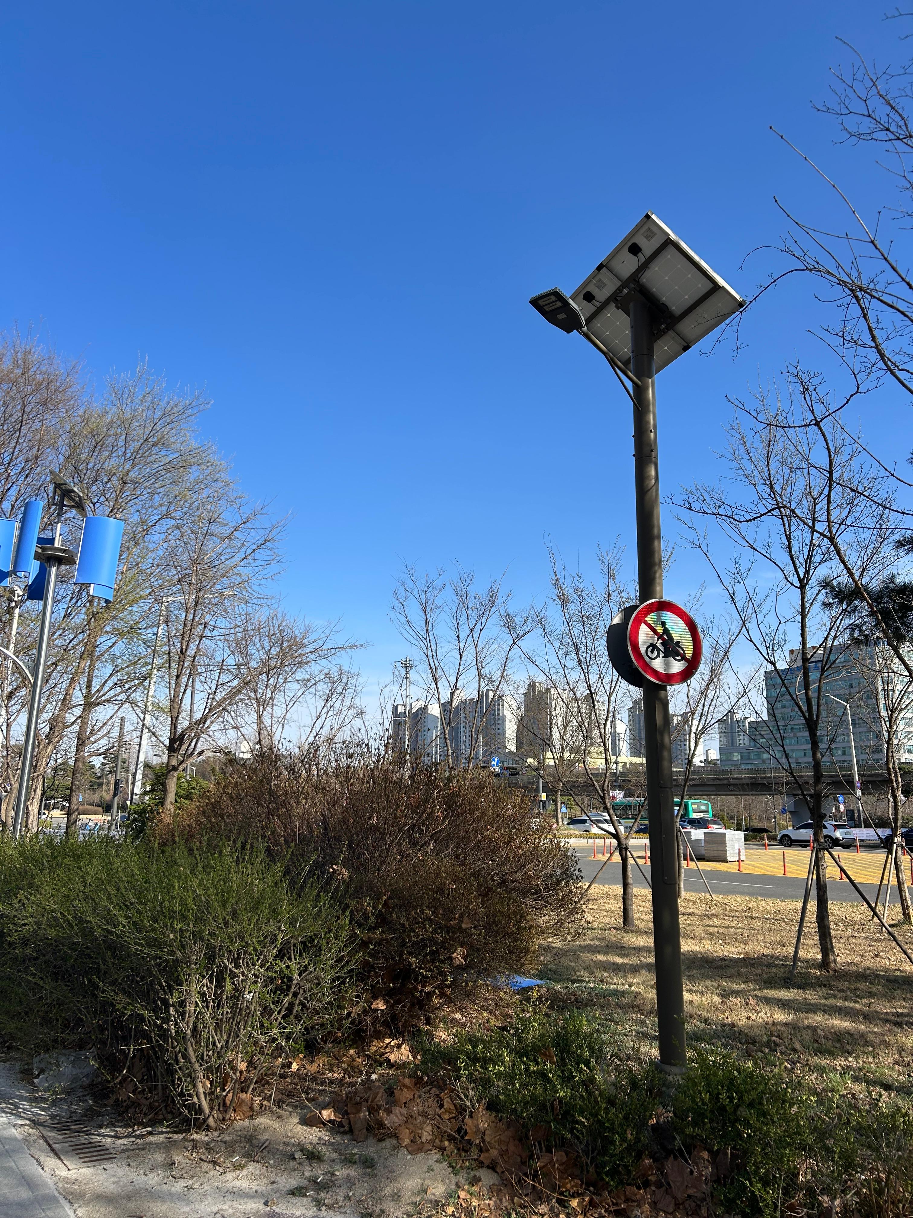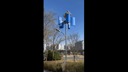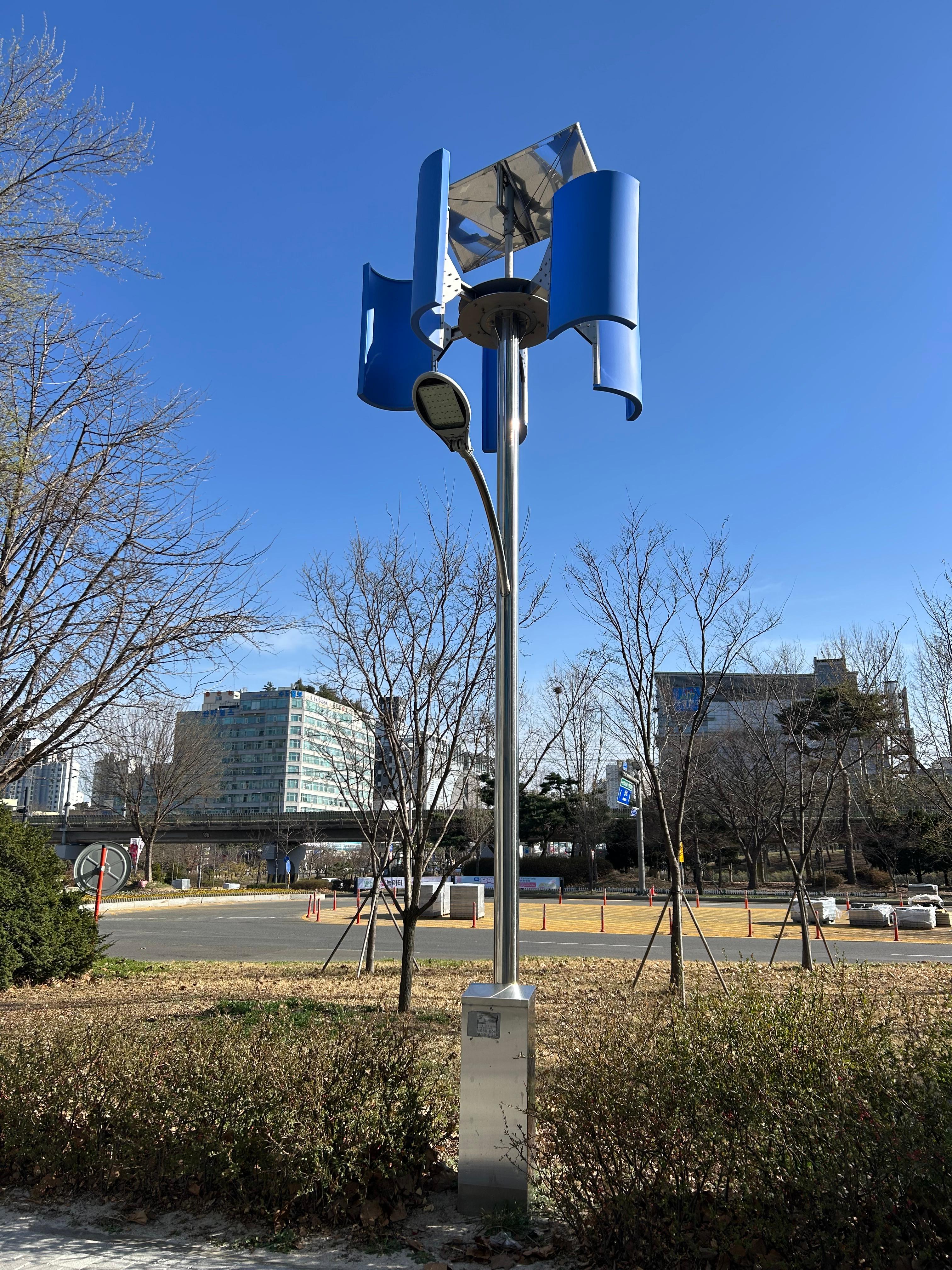 태양광과 풍력 전기 설비가 있는 가로등?