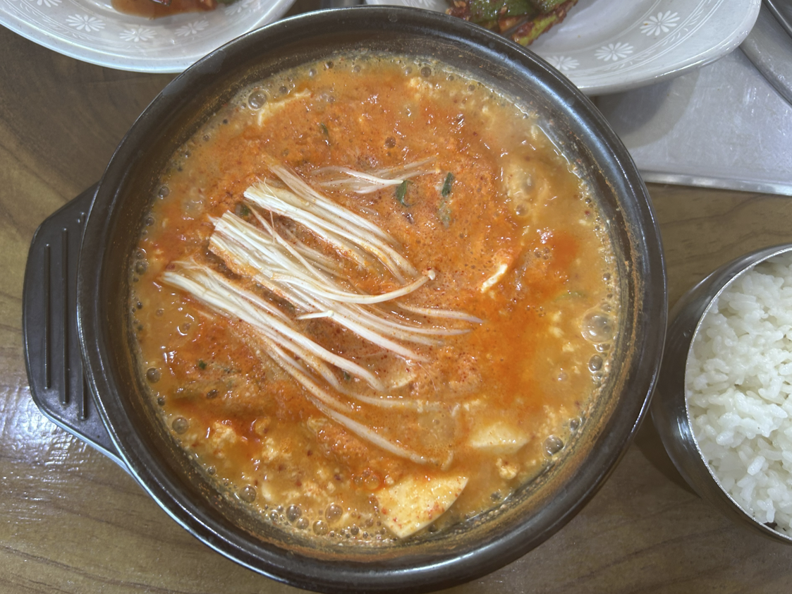 '윤석열 탄핵인용일'인  4월4일(금) 은 저녁에 축하 파티가 있어서 이 집의 전공인 손두부가 아닌 일반 해물순두부로 간단히 주문했어요.