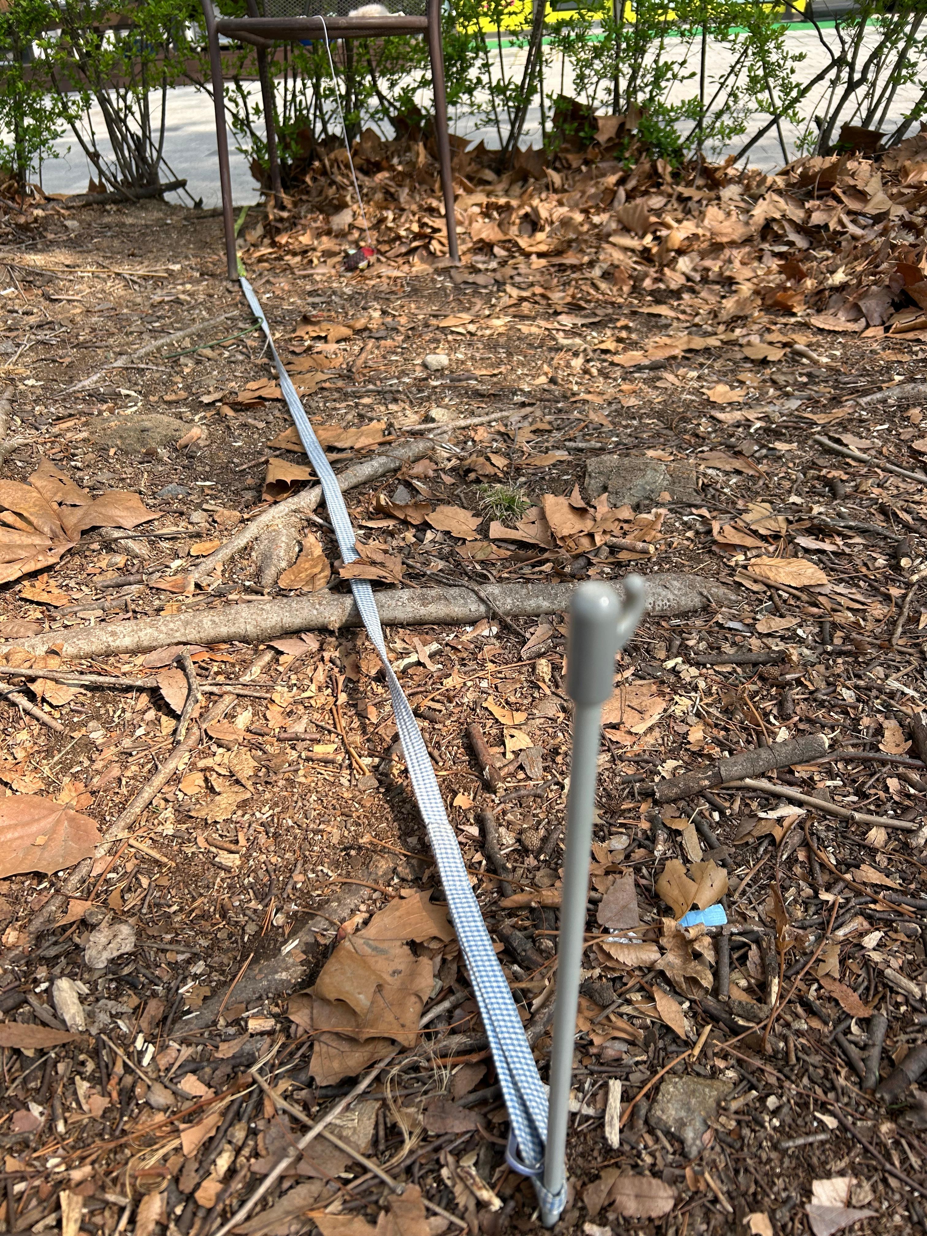 1) 목줄이 팽팽해질 때까지 뒷걸음 친다.