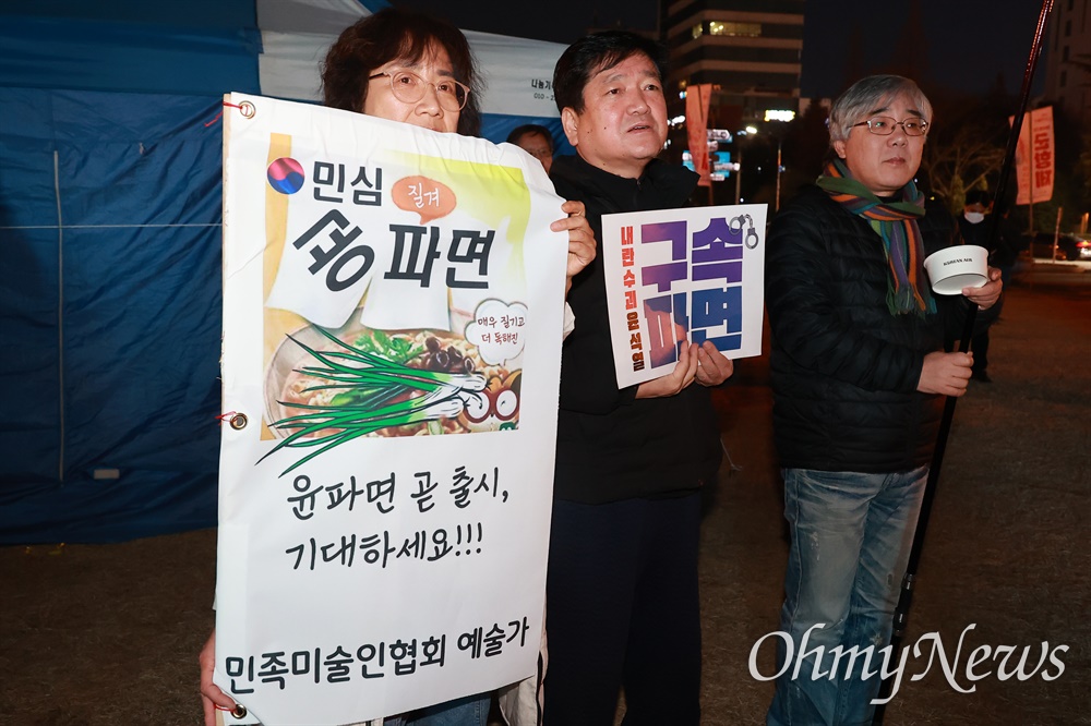 신미란 작가는 "민심 질겨, 윤파면"이라는 풍자그림을 갖고 나왔다. 신 작가는 조만간 민족미술인협회 예술가들이 '윤파면' 관련 주제로 전시회를 열 것이라고 밝혔다. [출처] 오마이뉴스, 2025.03.21