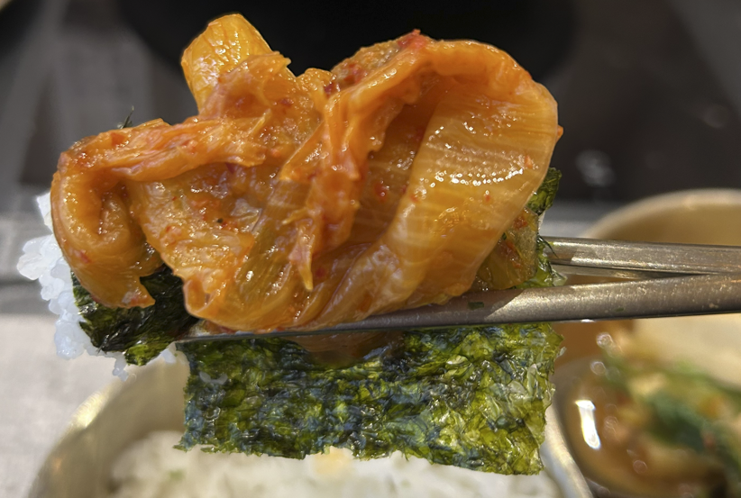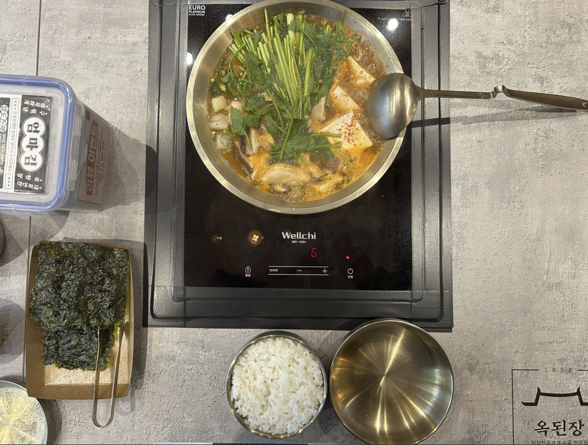 바삭 엄마김, 김치찜 그리고 표고버섯 된장도 조화로와요. 그 순서로 로봇같이 착착착 진행하여 다 비웠습니다. 그런데 김치찜이 먹을수록 짠 느낌(?)이 있어요. 이상하네? 프랜차이즈인데? 바닥에 남은 것을 가져온 것인가? 아무튼 짠 느낌이 나요~. 지점별 관리 방법에 따라 다를 수 있겠죠!