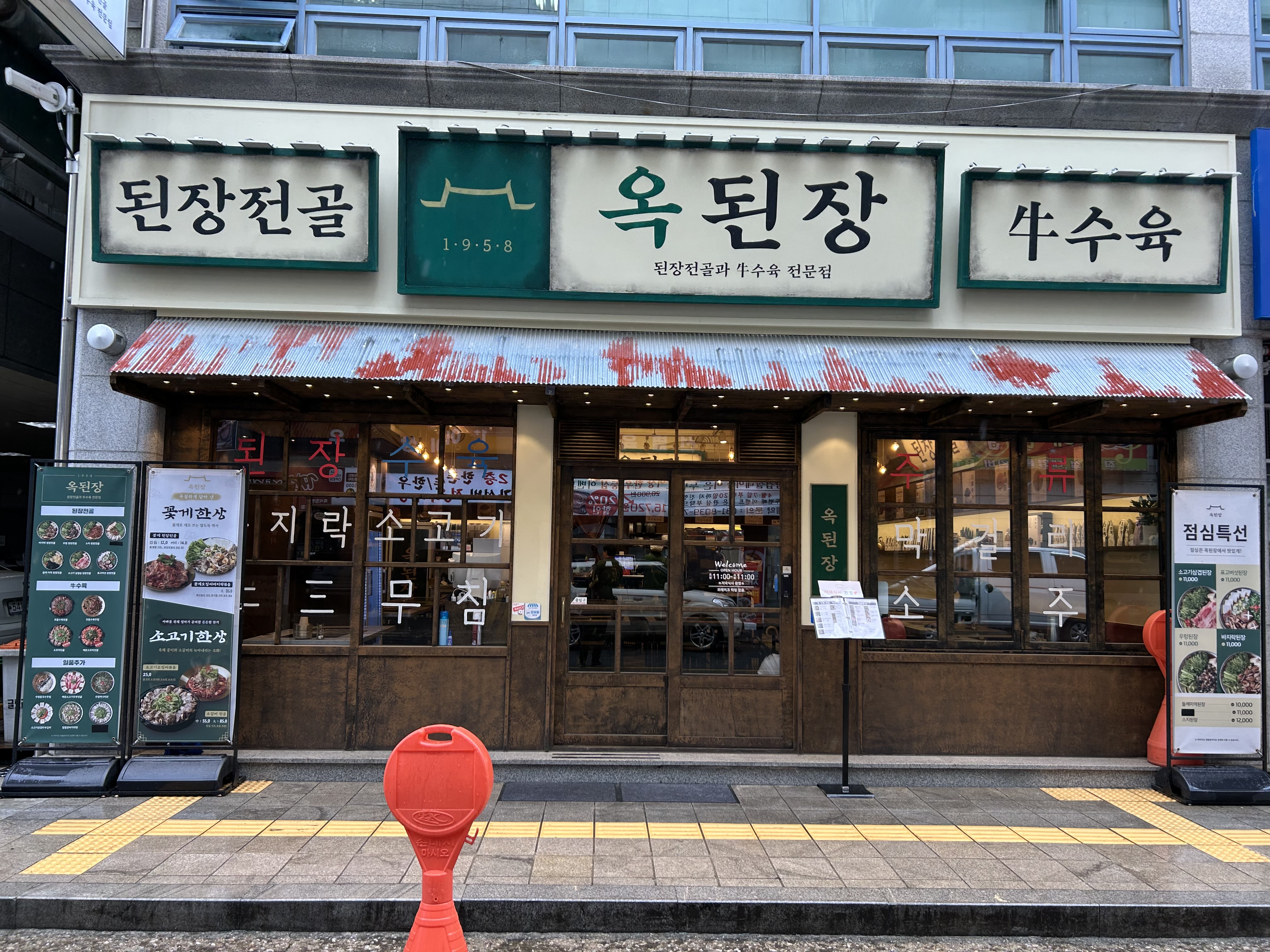 '옥된장'은 프랜차이즈입니다.  분위기와 맛이 동일할 것입니다. 지난번에는 안양 1호선 금정역 근처에 있던 '옥된장 호계점'을 방문하였습니다. 그 때는 옵션으로 선택한 (공장 생산) 수제비로 인해 씹는 맛이 심하여 평점 2점을 주었습니다. 이 번에는 어떨까요?