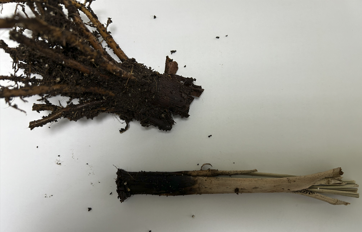 한 뿌리는 살아있고 다른 한 뿌리는 줄기가 완전 죽었다,