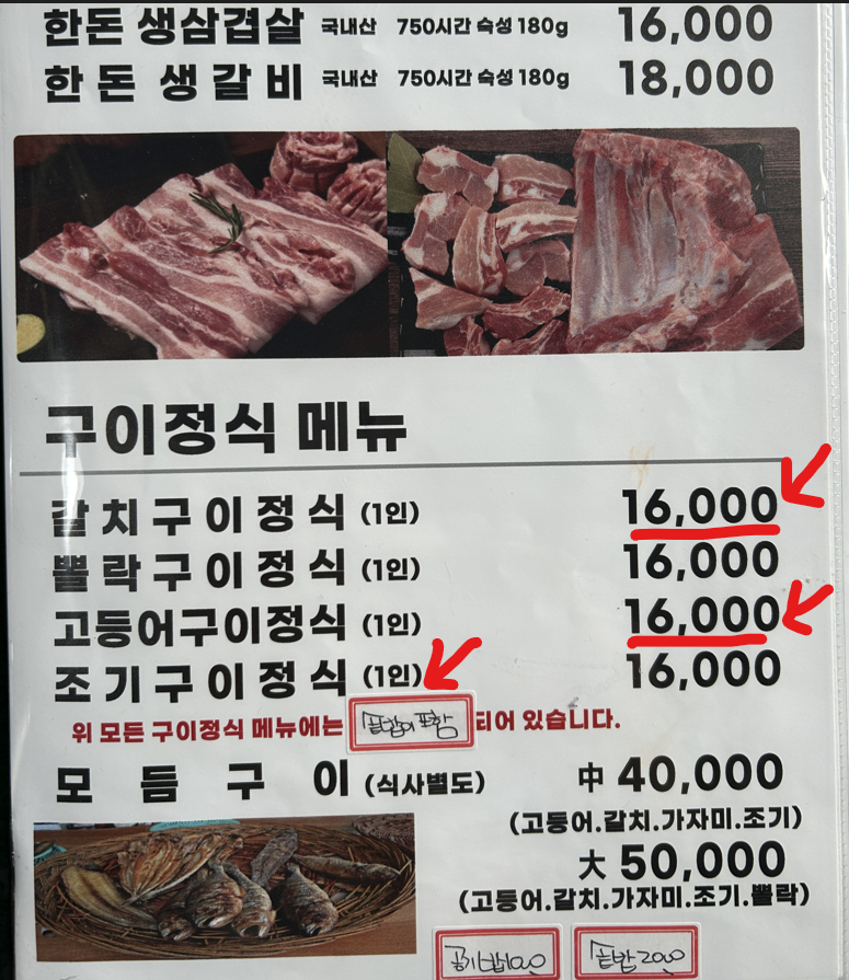 갈치구이 정식과 고등어구이 정식 하나씩 주문했어요. 먼저 이거 알고계세요! 인천시 직생중 '화덕 생선구이' 방문한 적이 있어서 맛과 가격에 대한 기준점이 있다는 것을....