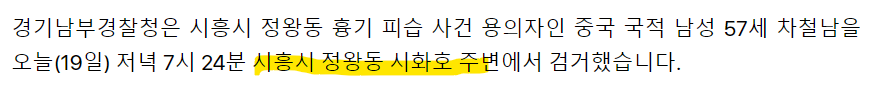 경찰 "시흥흉기피습 용의자, 신속 검거 위해 공개 수배" 57세 남성 차철남…검정색 점퍼·흰색 운동화 착용 연합뉴스TV 기사문의 및 제보 : 카톡/라인 jebo23 김보나(bonamana@yna.co.kr)
