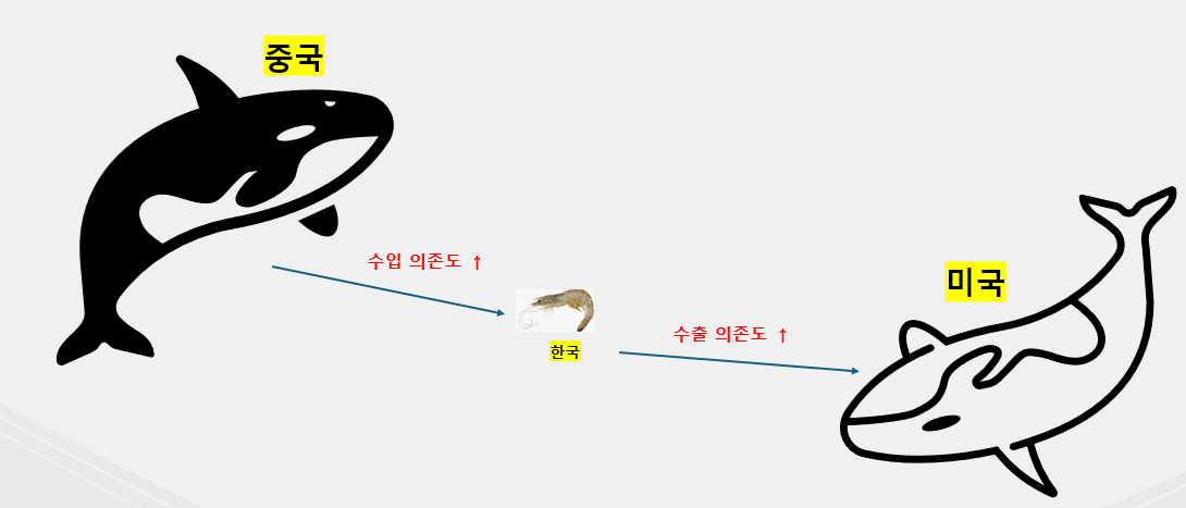고래(미국과중국)들 싸움의 전략과 새우(한국)의 의존도
