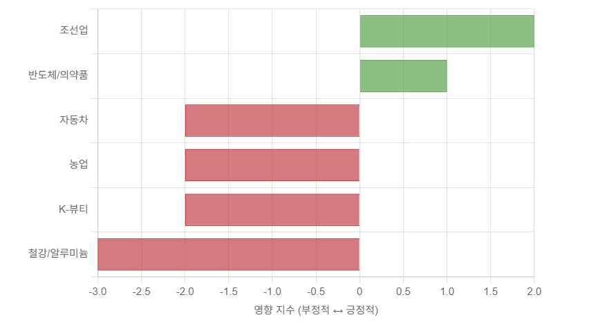 조선업 긍정적 1. 한국이 약속한 3,500억 달러 규모의 미국 투자 자금 중 상당 부분(1,500억 달러)이 조선업 협력에 할당되었습니다.2