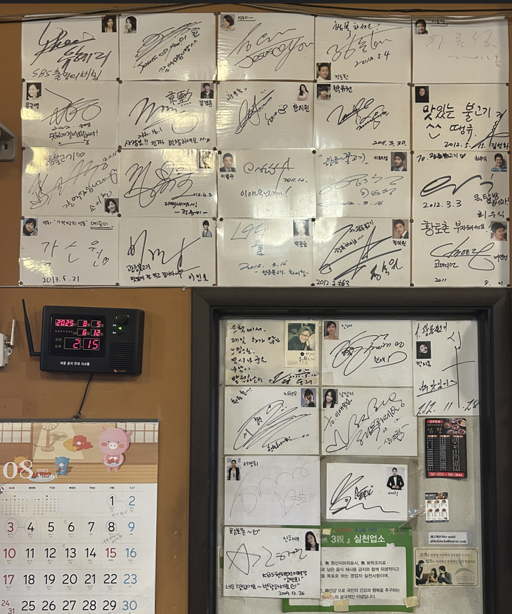 성유리, 한지민, 남상희, 이민호, 최우식 등의 이름이 보이네요. 성추행범 '박유천'도 스쳐갔네요. 이곳 근처에서 SBS 출생의 비밀 촬영 장소가 있어서 talent들이 자주 방문했다고 하네요~~