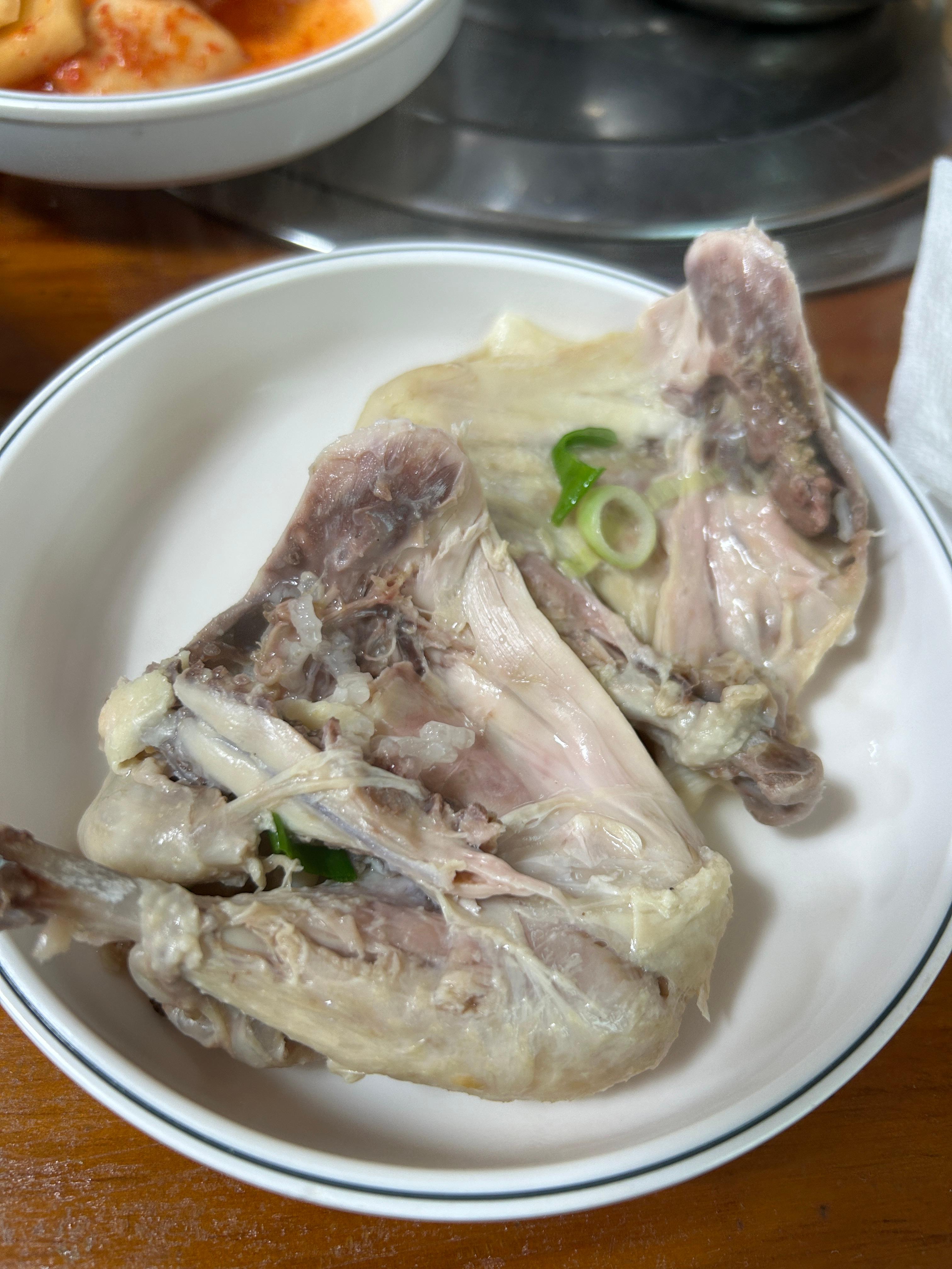 닭 다리 먼저 발라서 소금 살짝 먹고...