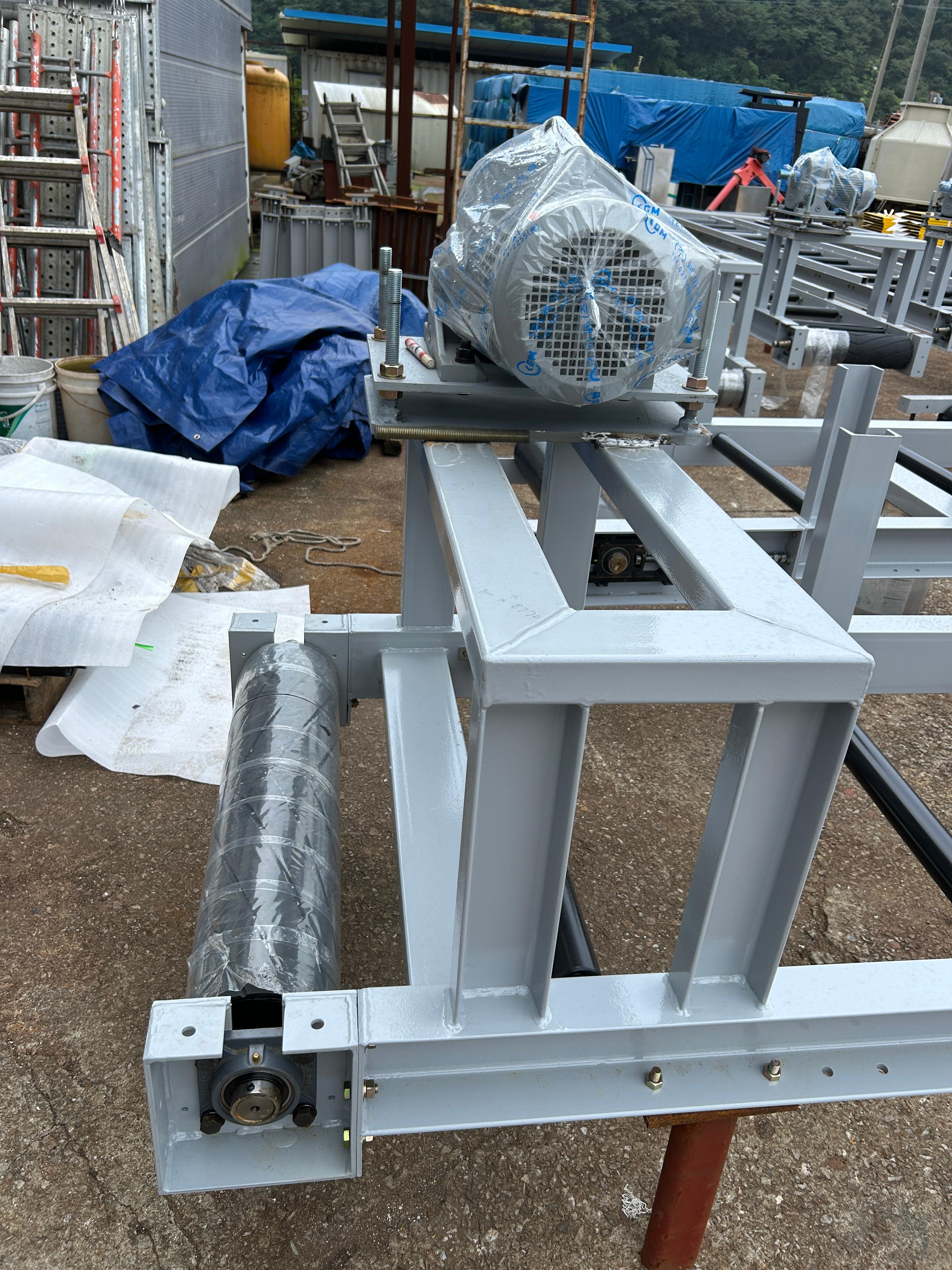 규격 프레임에 모터 구성품과 스큐류 컨베이어가 조립됩니다.