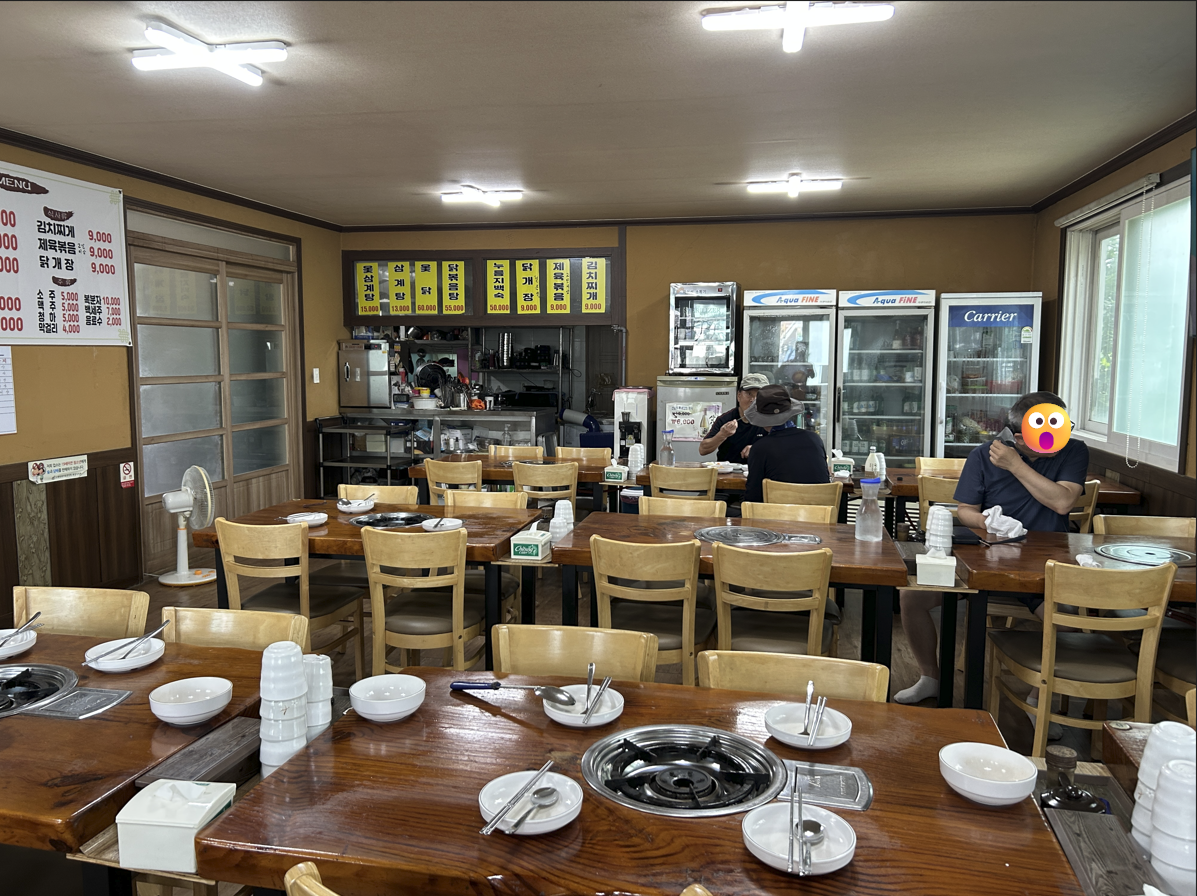 단체 손님 방문 예정이라 몇 테이블에 세팅이되어있네요. 역시나 아주머니 혼자 13년 해왔다고 하네요.
