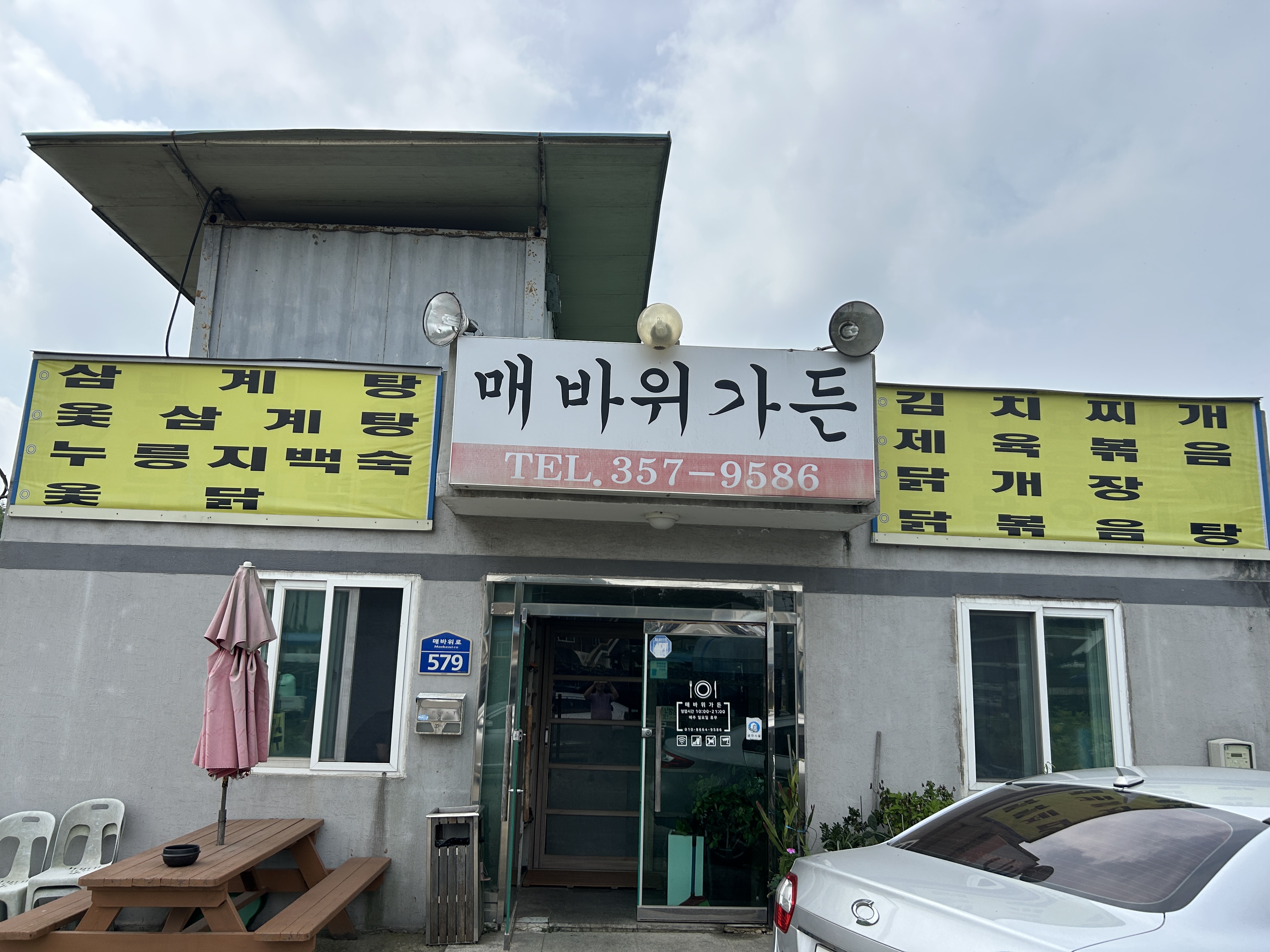 경기도 화성시 매바위로 579(장덕동)에 위치한 '매바위가든'을 방문했어요. 일부러 프랜차이즈가 아닌 허름한 식당을 찾아보았더니 나오네요. 당연히 유튜브라든지 맛집 탐방이라던지 이런 프로그램에 등장하지 않아요. 왜냐하면 대부분 혼자나 가족이 모여 운영하기 떄문이죠. 이런 곳에 맛집이 있을 수 있어요. '수제 삼계탕' 전문이라고 붙어있네요. 무슨 의미인가요? 프랜차이즈 같은 곳에서 대량으로 공급하는 또는 마트의 비닐에 담긴 유형과 같은 것이 아니라는 의미겠죠~~. 들어가볼까요?