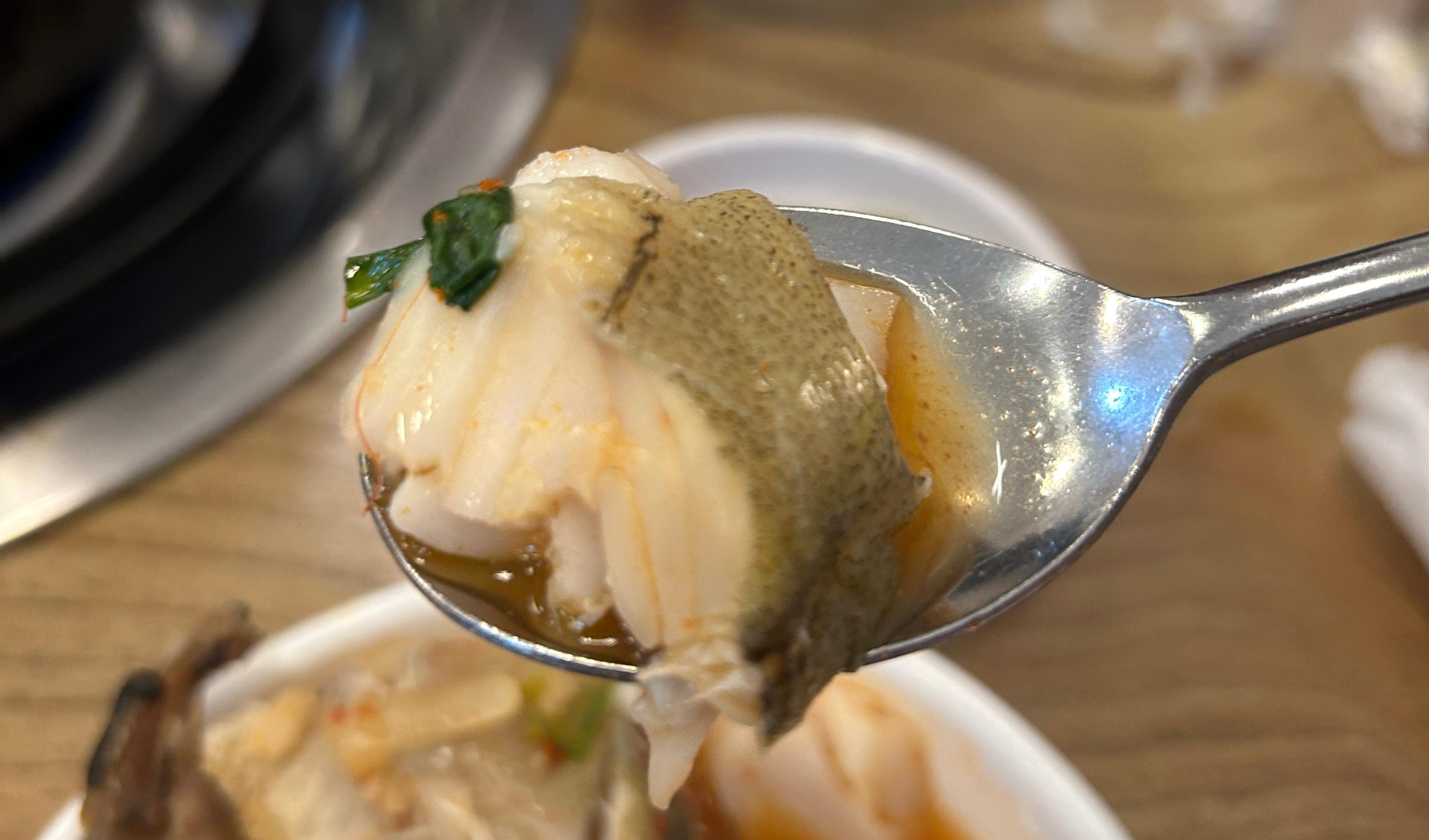 **  라면과는 안 어울려요.  그냥 동태 국물 맛으로 먹는 것이  최고랍니다.