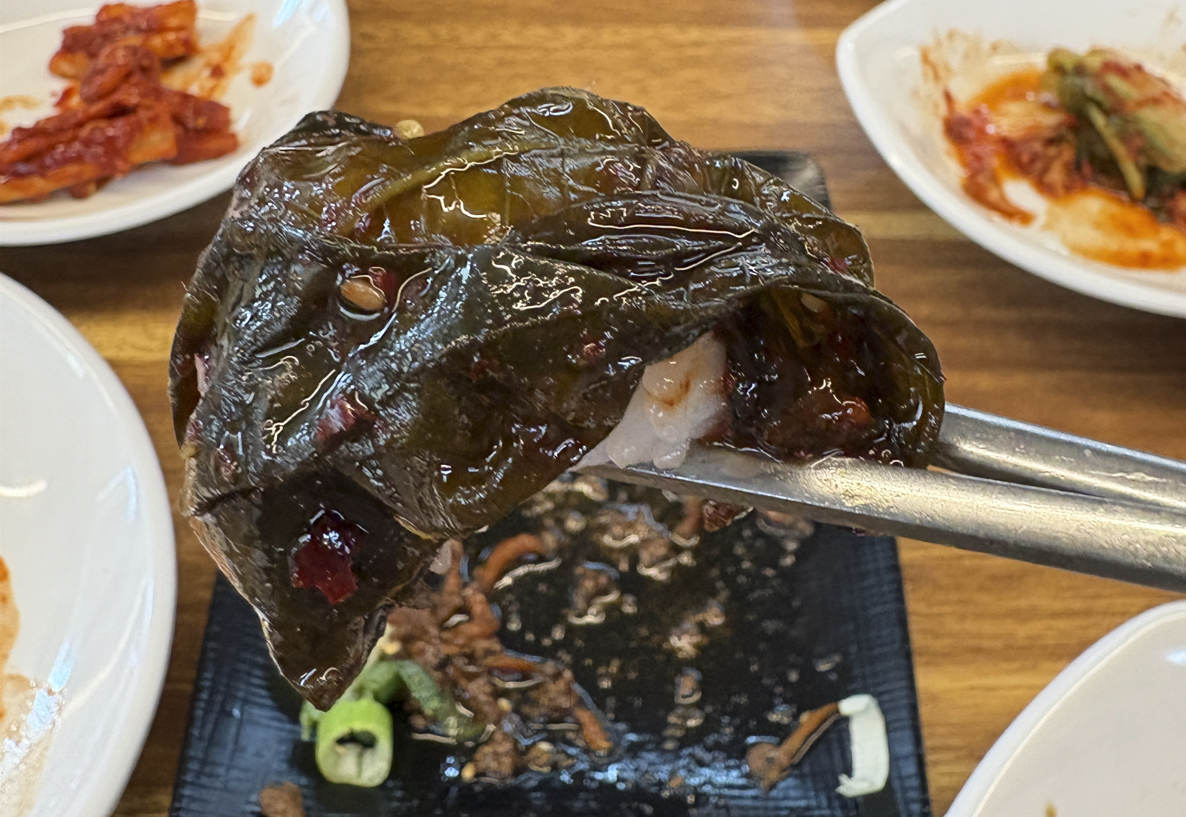 깻입싸서 밥 한입...