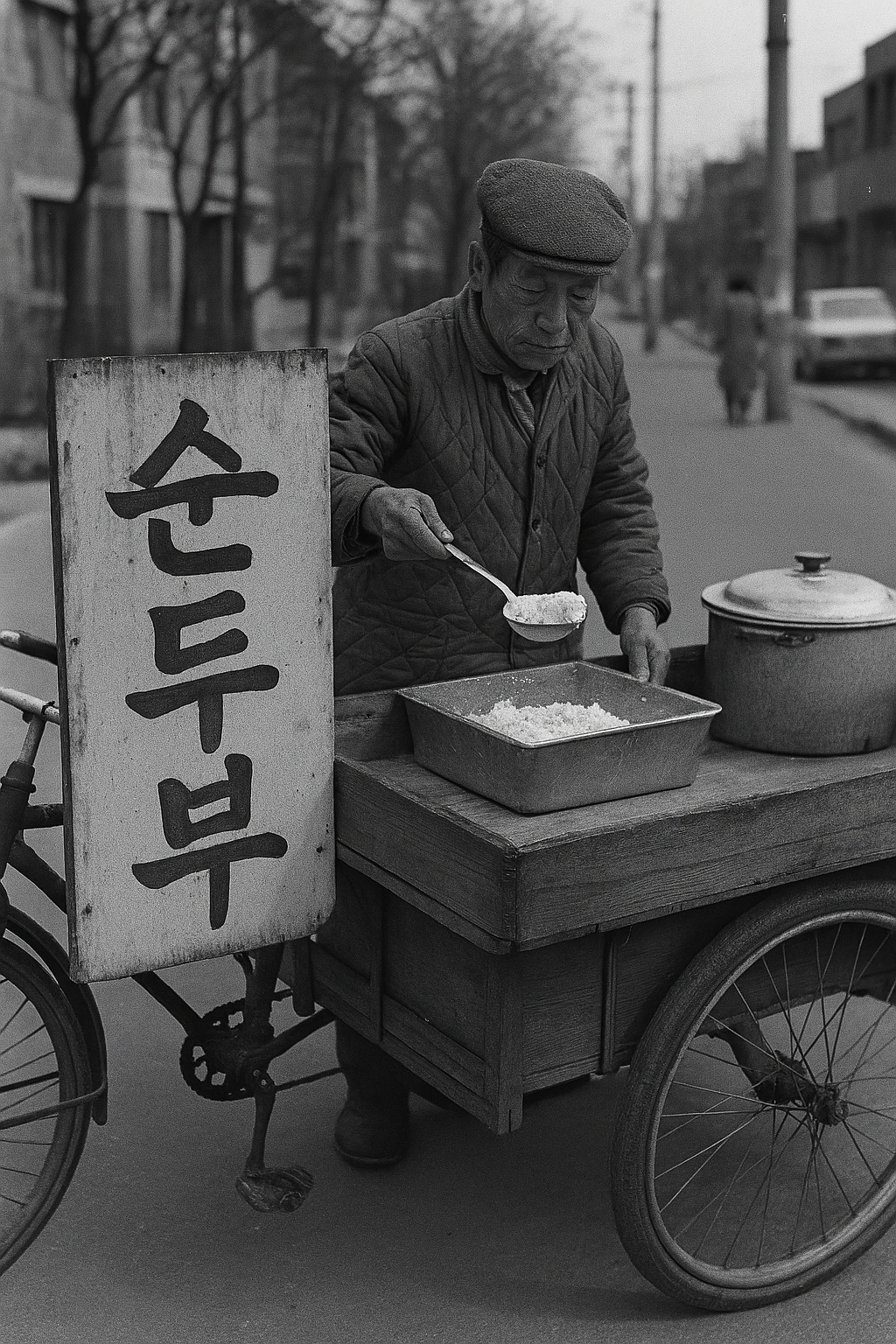 아...구글에서도 리어카 순두부 판매 사진을 찾을 수 없어요. 사실을 증빙할 수가 없네요. MS CoPilot AI에게 그려보라고 했어요.