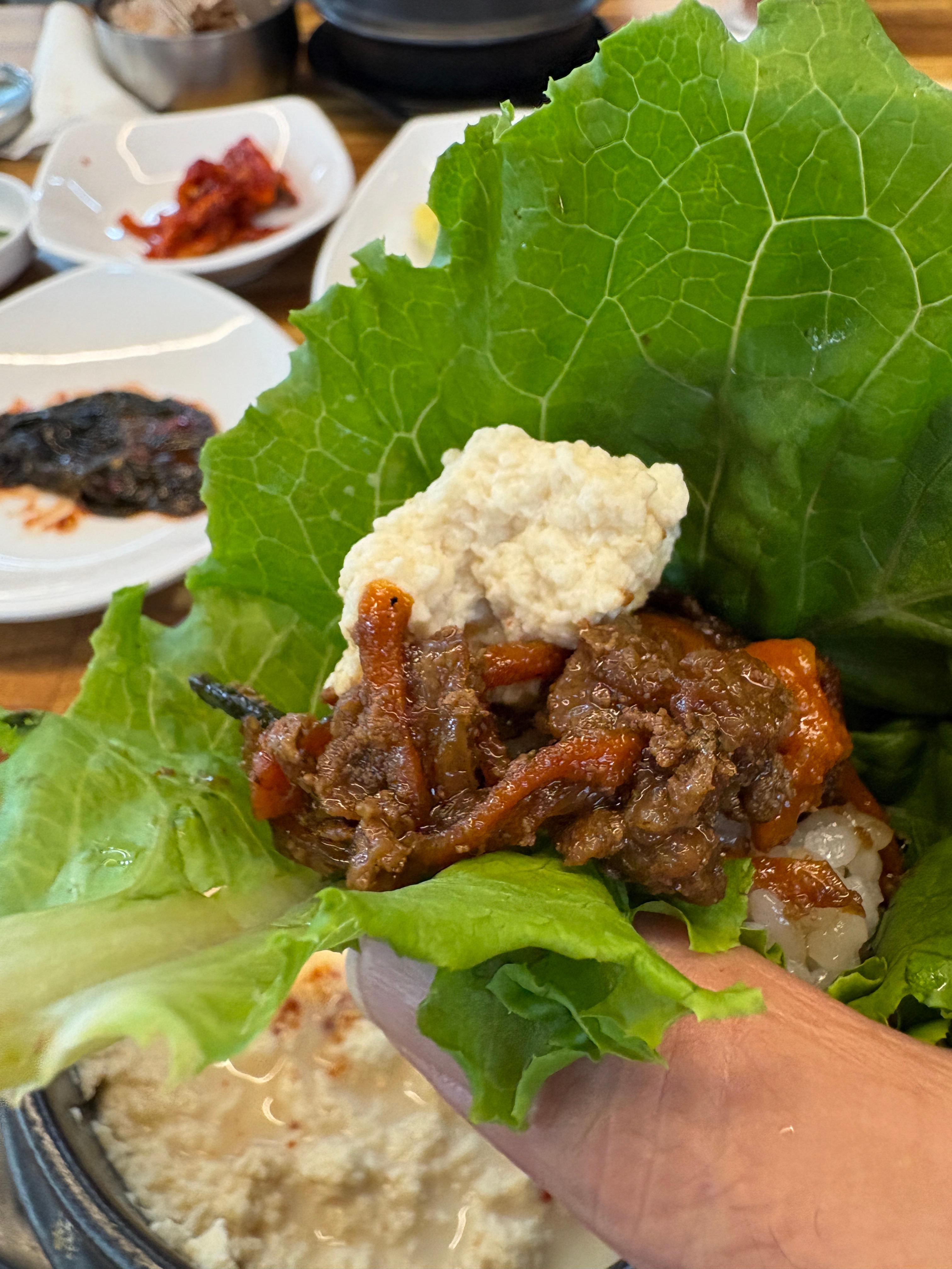 돼지불백 싸서 한입...