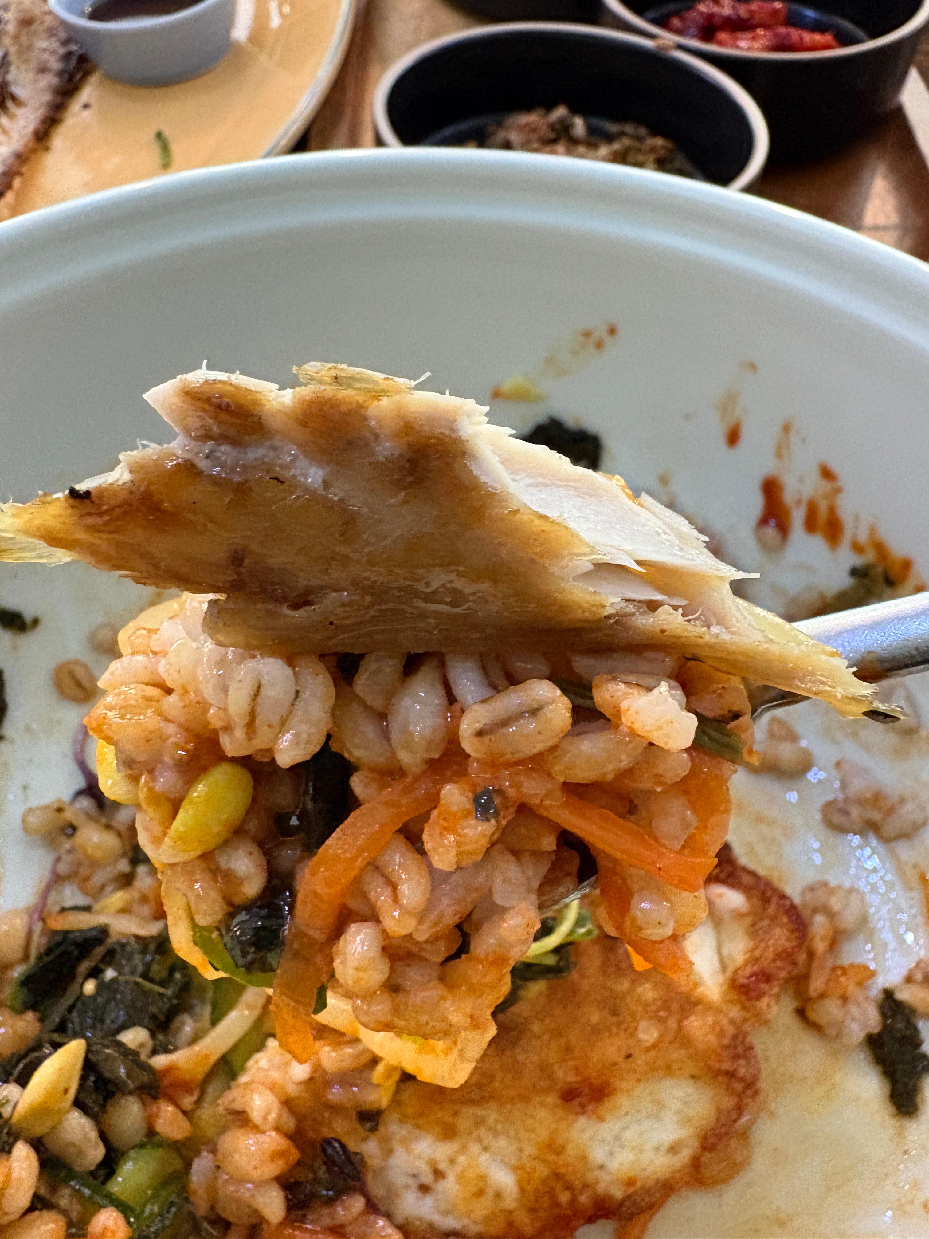 부드러운 고등어 살과 보리밥 한 입~~