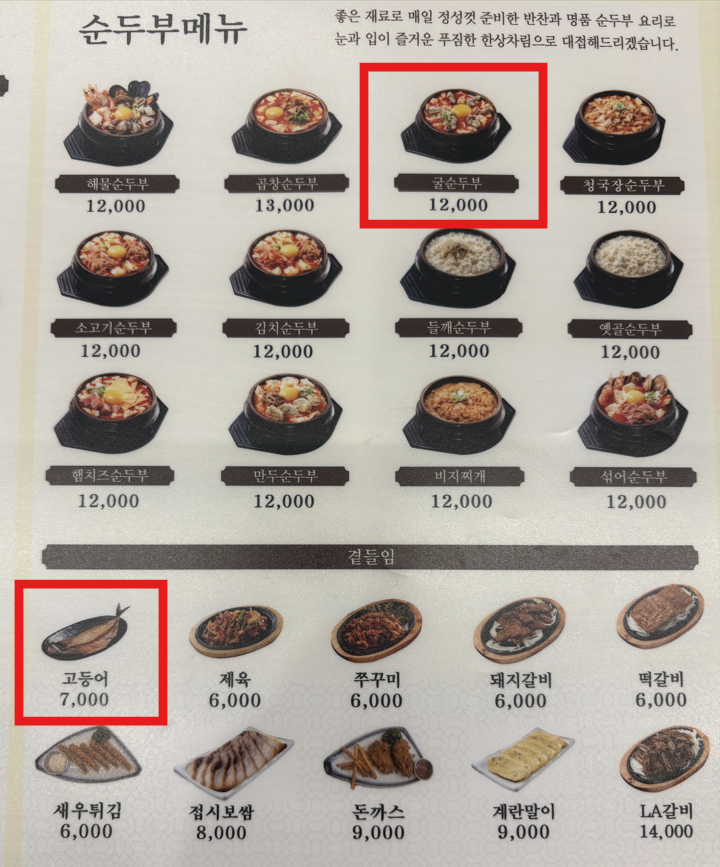 ** 청국장, 김치 등 뒤범벅 순두부는 NO 추천!