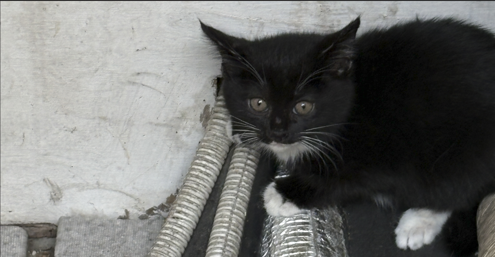 에어콘 뒤에 숨은 Kitty 들. (총 5마리)