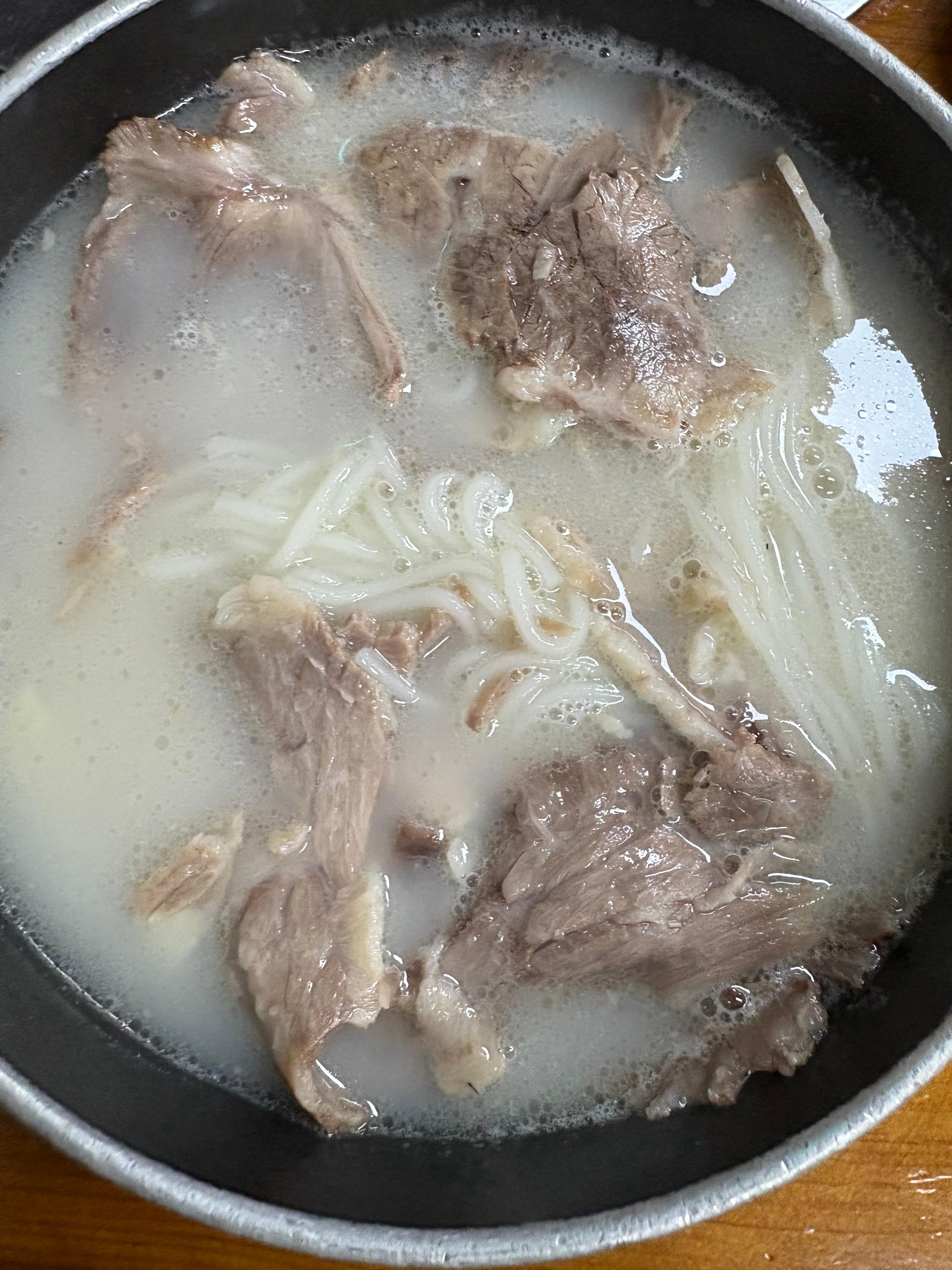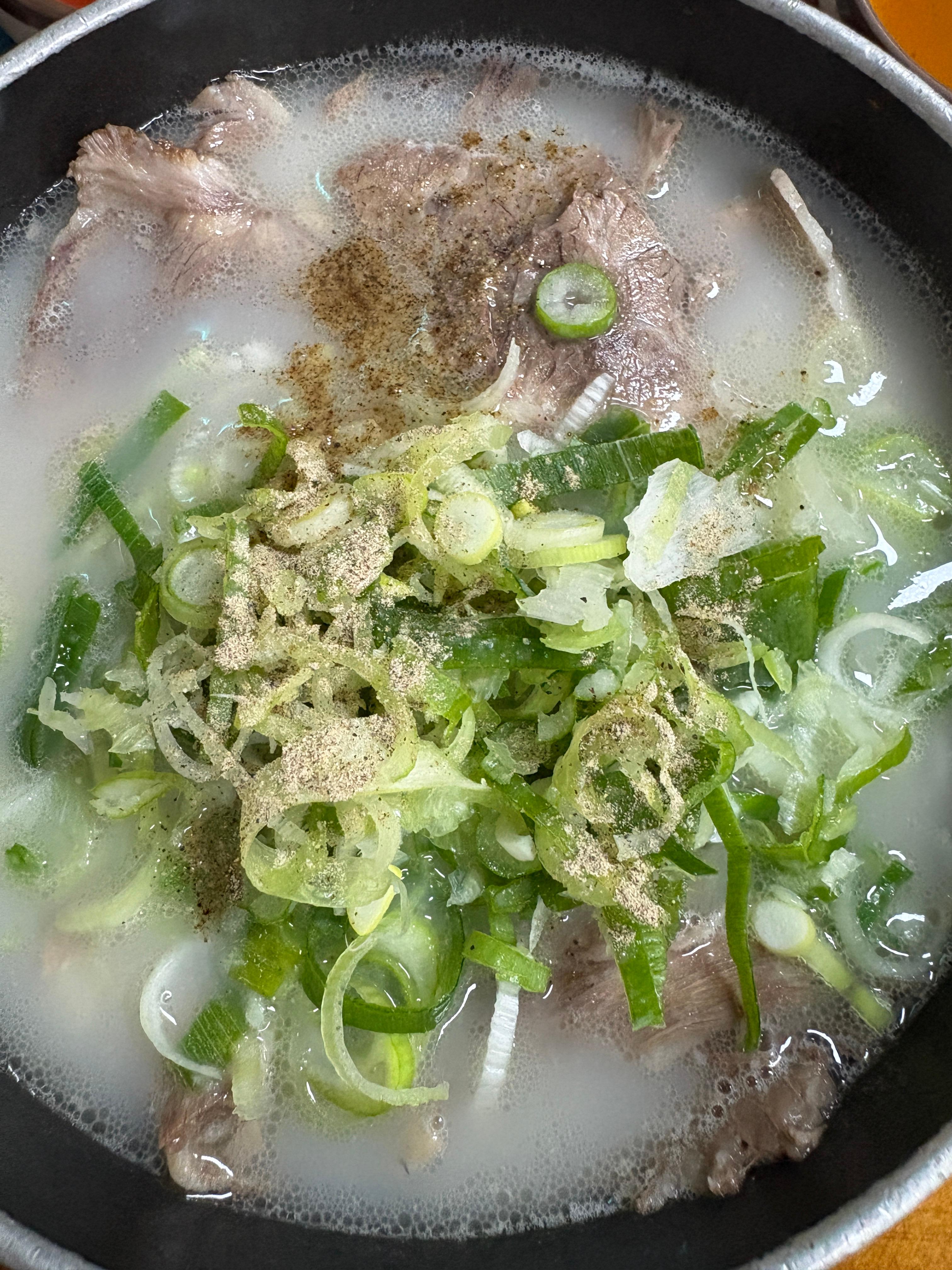 근데 국물에 기름기가 동동 떠있는 것이 프랜차이즈 나주 곰탕보다 더 진하게 보이네요  아주 오래전 어머니가 끓여준 '곰국'이란 것에도 저런 기름이 떠 있던 것이 기억나네요.  기대 만발~~^^